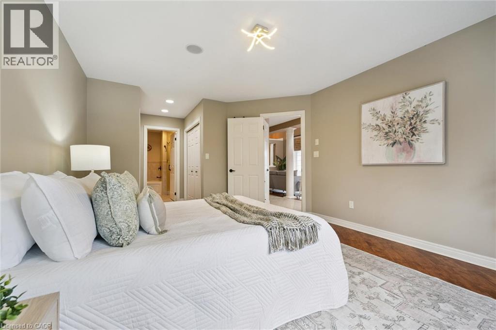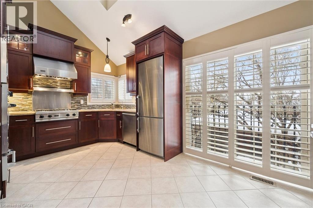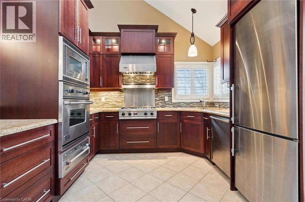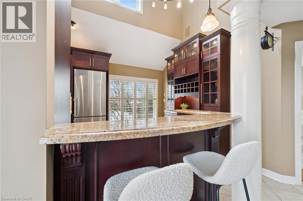 Rarely offered and beautifully finished from top to bottom, this exceptional end-unit walkout freehold bungaloft offers over 3,200 sq ft of thoughtfully designed living space in one of Guelph’s most desirable South End locations. Offering incredible flexibility, this home is ideal for families, multi-generational living, retirees seeking main-floor convenience, or anyone needing space to work and live comfortably. The grand main floor welcomes you with soaring 16-foot ceilings and a bright, open-concept layout perfect for everyday living and entertaining. The gourmet kitchen features built-in stainless steel appliances, granite countertops, a breakfast bar, and ample cabinetry, flowing seamlessly into the living and dining areas highlighted by a cozy gas fireplace. The spacious primary suite offers his and hers closets and a private 4-piece ensuite. A generous office (currently used as a second bedroom), powder room, and convenient main-floor laundry with garage access complete the level. Upstairs, the loft with skylight provides a perfect lounge or reading space, alongside a bright third bedroom with walk-in closet and a full 4-piece bathroom. The fully finished walkout basement adds exceptional living space and versatility, featuring a custom wet bar, large recreation and family areas, a full bathroom, and two additional rooms ideal for a gym, media room, office, or guest space — easily accommodating extended family or teenagers. Professionally landscaped gardens lead to a private, fully fenced backyard with patio stone seating and a custom composite deck complete with a 12’ x 14’ Yardistry pergola and mood lighting, creating a beautiful outdoor retreat for summer entertaining. Quietly tucked at the corner of a peaceful street while just steps to South End shopping, excellent schools, trails, transit, and easy highway access, this home offers the perfect balance of privacy and convenience. (70163364)