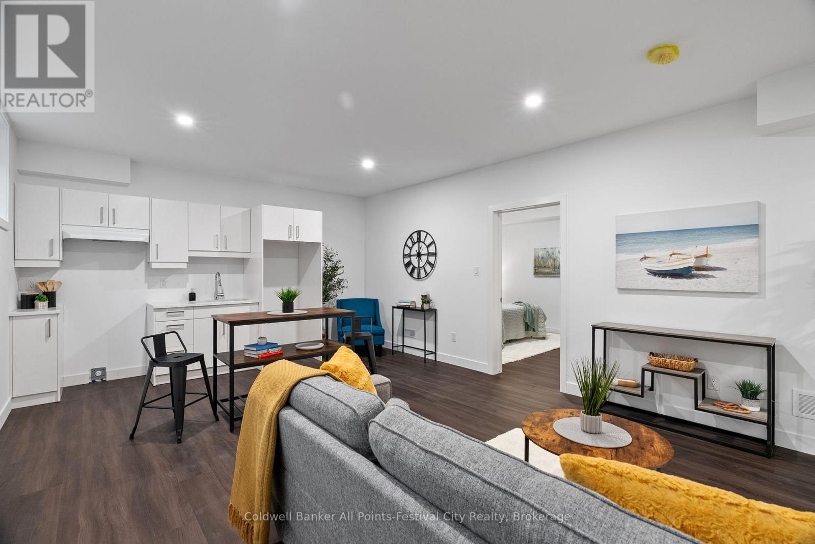 Stunning Brand-New Bungalow in Goderich! Beautifully designed 4-bedroom, 3-bathroom semi-detached bungalow offering over 1,700 sq. ft. of modern living space in a quiet Goderich location. The exterior features elegant brickwork, covered porch, attached garage, double driveway, and private rear patio. Inside, enjoy an open-concept layout with quartz countertops, porcelain tile, and premium finishes throughout. The main level includes a luxurious primary suite with glass shower ensuite, second bedroom, large laundry room, and direct garage access. The fully finished lower level adds exceptional space with a second kitchen, two bedrooms, full bath, and bright living area-ideal for family or guests. Separate entrances offer income potential! (42145397)