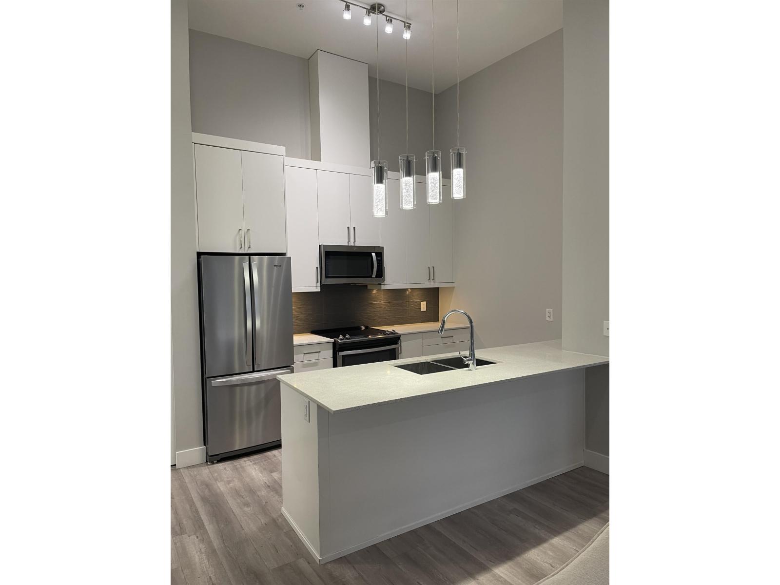 Welcome to THE MUSE! This bright upper-floor, north-west facing 2-bedroomt 2-bath home offers a spacious open-concept layout, 9-foot ceilings, and expansive windows that fill the space with natural light. The modem kitchen features quartz countertops, Whirlpool stainless steel appliances, glass backsplash, and soft-close flat-slab cabinetry. Interior highlights include laminate flooring, modern lighting, and shaker-style doors. Enjoy two balconies with city views. This well-maintained concrete building offers a fitness centre, social lounge, and rooftop patio, all in a central Scott Road location steps to shopping, transit, parks, and SkyTrain access, Includes 1 parking and 1 storage. (32448583)