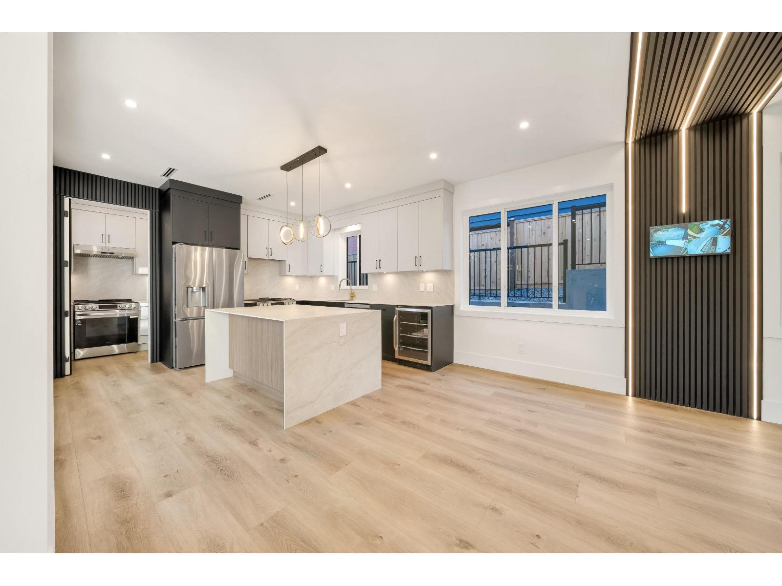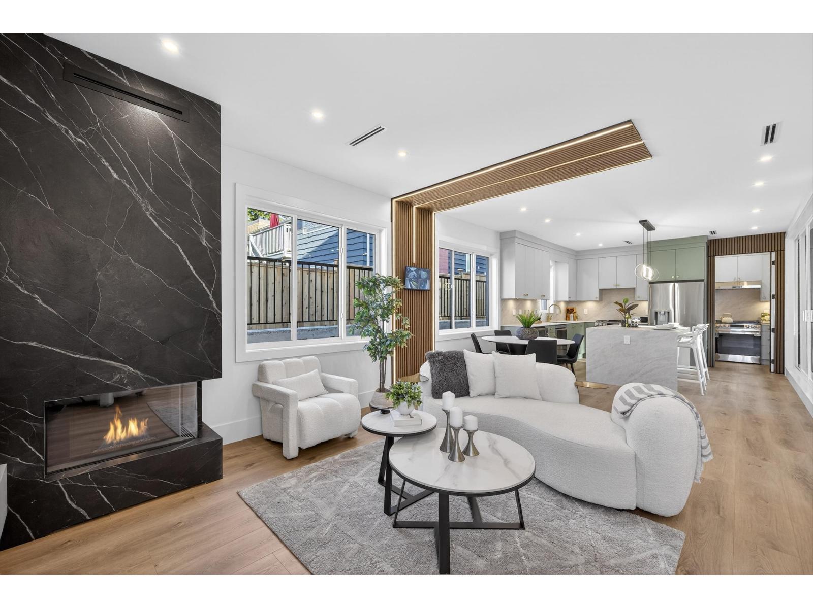 Brand-new modern West Coast ½ duplexes on a prime corner lot with unobstructed Burns Bog views. Each side offers 3,022 sq.ft.+390 sq.ft. covered decks on a 9,000 sq.ft. lot(approx.4,500 sq.ft.per unit),side-by-side double garage & 53-ft driveway parking up to 8 vehicles. Open-concept main floor with floor-to-ceiling windows,designer kitchen with double fridge,wine fridge,gas range & hidden spice kitchen, +main-floor bedroom with full bath. Upstairs features 4 bedrooms,full laundry & luxurious primary suite with California Closets,spa-inspired ensuite&covered patio. Basement includes 2-bedroom legal suite & rec room with full bath. Finished with custom cabinetry,slab-marble feature wall, LED lighting,glass railings,Control4 smart home,A/C & tankless hot water. Open House Sat Feb 28th 1-4 PM, Sun Mar 1st 1-4 PM. (32448186)