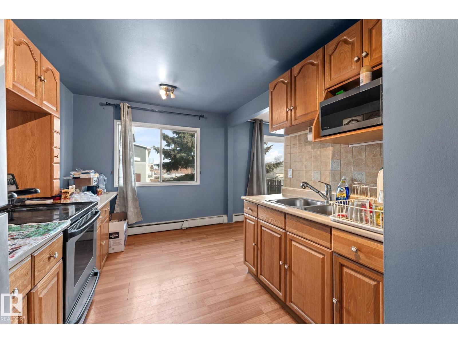 Investment opportunity. Tenant in place rented at $1,100 per month. Top-floor end unit in Eastwood community featuring 1 bedroom, 1 bathroom, plus a large interior storage room. The functional layout includes a separate kitchen, dining room, large living room, 4-pc Bath, and a balcony. The large bedroom offers generous closet space. An extra-large parking stall that can accommodate a large pickup truck with ease. Located in a central and friendly Eastwood neighbourhood, this home is across the street from FreshCo and close to local shops, restaurants, and bus routes, with easy access to the Coliseum LRT station for downtown commuting. Quick drives connect you to Yellowhead Trail, Kingsway Mall, NAIT, and Grant MacEwan University. Some photos have been virtually staged. (33832746)