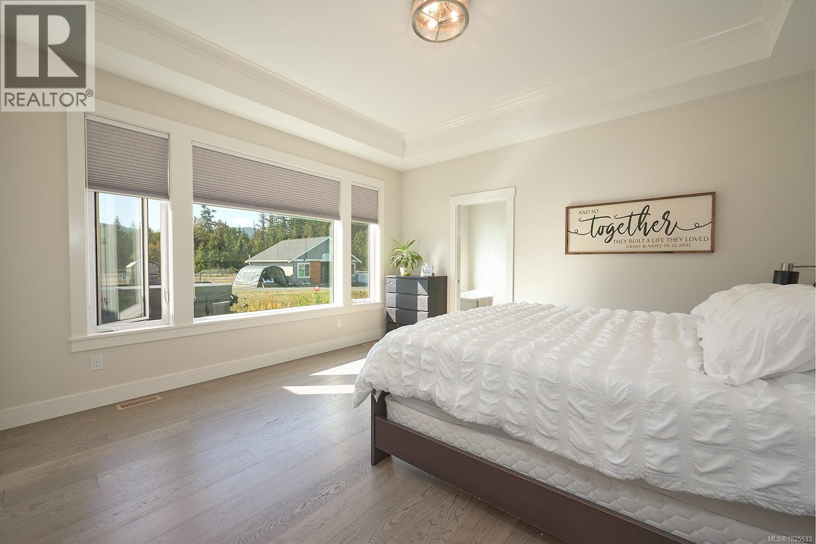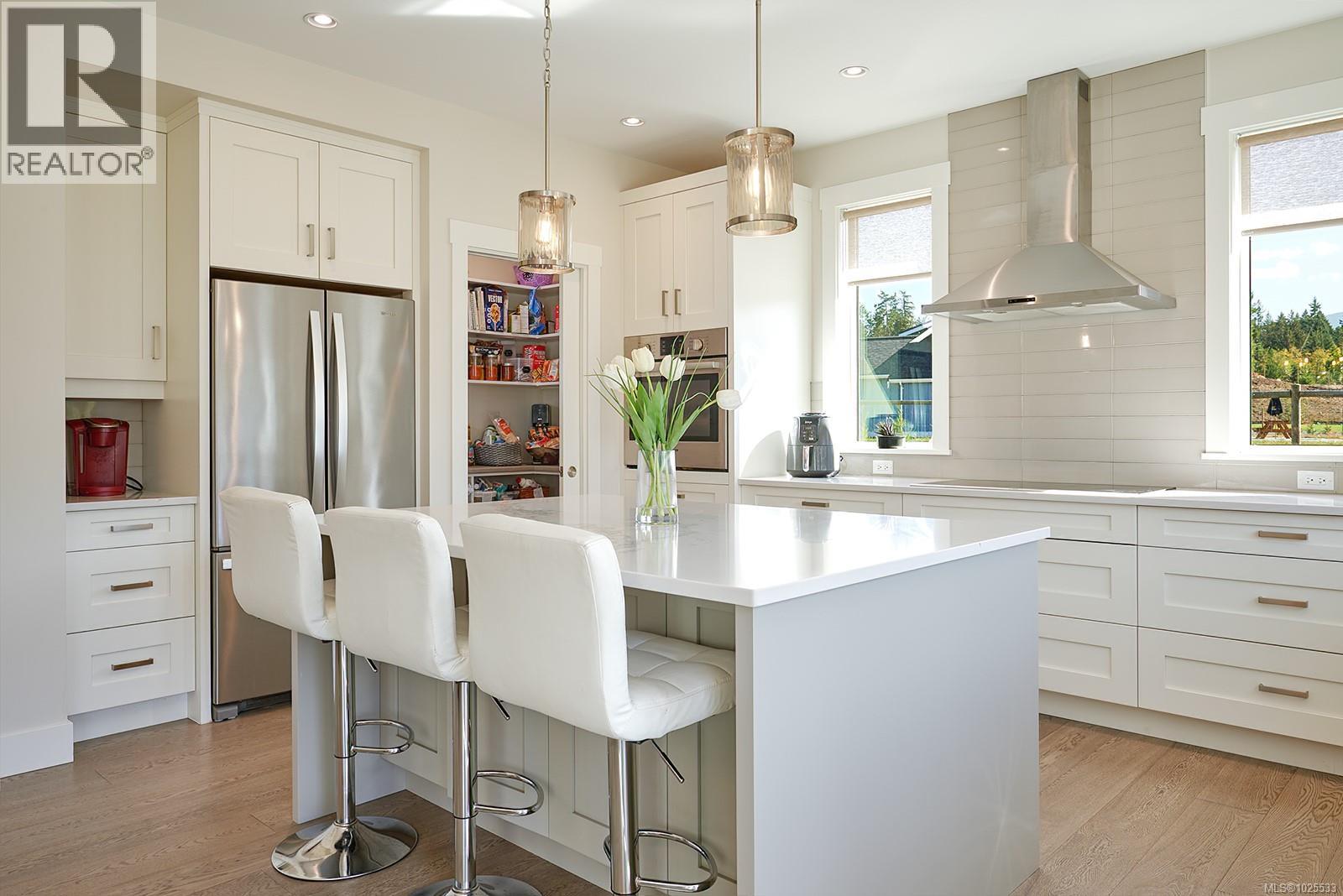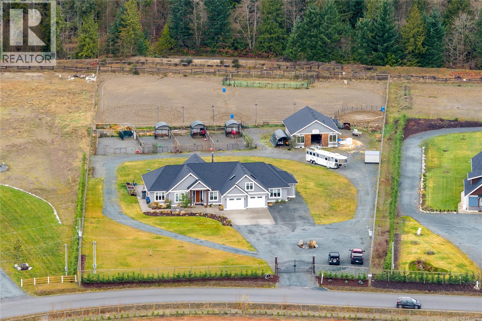 Experience luxury equestrian living in this stunning custom-built estate. Set on 2.5 acres in a tranquil enclave of newer homes, this expansive property features over 3,000 sq ft of thoughtfully designed living space and a perfect equestrian setup. The home offers 5 bedrooms plus a den and 4 bathrooms, combining style and practicality with engineered hardwood floors, quartz countertops, and a striking rock-surrounded high-efficiency wood stove. Comfort is guaranteed year-round with a heat pump and forced air furnace. Outdoors, no detail has been overlooked. Enjoy aggregate decks, a double garage, lush landscaping with a 12-zone irrigation system, and raised garden beds. Horse lovers will be drawn to the 4-stall barn with heated tack room, wash stall, and bathroom, as well as a fully lit, professionally installed sand arena and 4 cross-fenced paddocks. With a dependable drilled well, this remarkable property perfectly balances sophistication, comfort, and country lifestyle. (30384893)