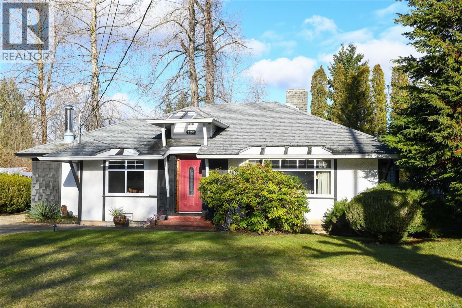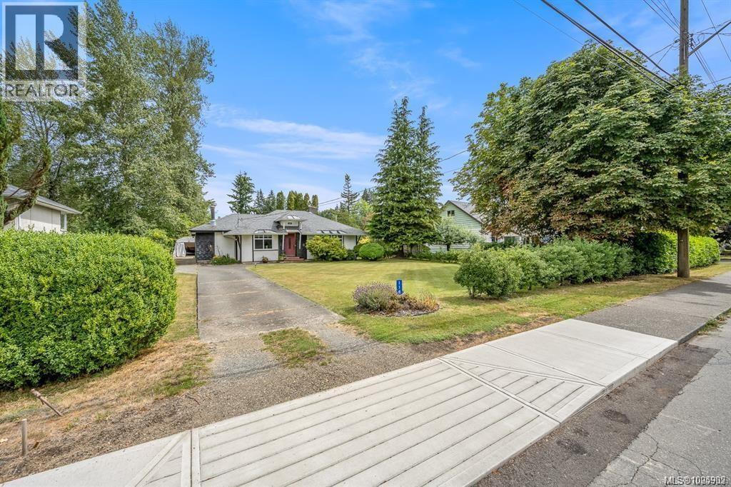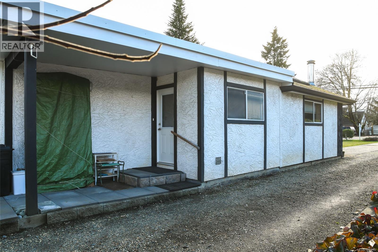 Welcome Home to 1180 Willemar Ave in Courtenay. This home with new roofing sits on a large .48 acre rectangular lot, is centrally located, and extremely versatile with development potential, or opportunity to create the perfect spot for your family. Front road AND rear alley (with gas line) access along with R-SSMUH Zoning for potential fourplex, carriage home, suite, home occupation and more. The house sits 60ft back from the avenue, and has mature landscaping for privacy with beautiful trees and gardens. The front entrance opens to bright den and living room with newer windows and fireplace featuring 1940s Union Bay bricks. The renovated kitchen and dining room open to sunroom built from repurposed greenhouse glass. Large primary bedroom and 5pc bath, and 2 additional bedrooms. Laundry room opens to a studio space, which could also make a perfect future office. New flooring in bathroom, back bedroom and hall. Close to downtown restaurants, shopping, services and school. Book your showing today, or call Island Home Savers Real Estate Team for more information. (30385359)