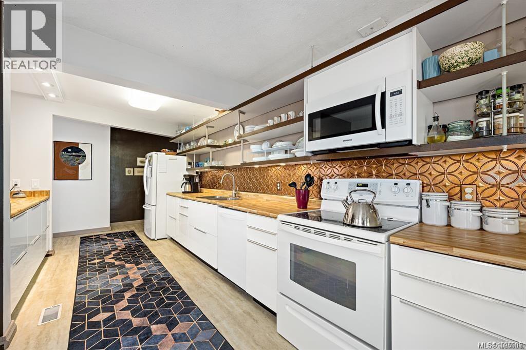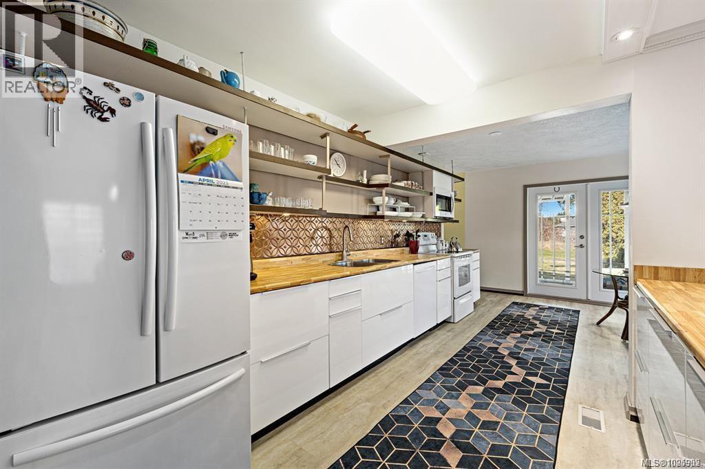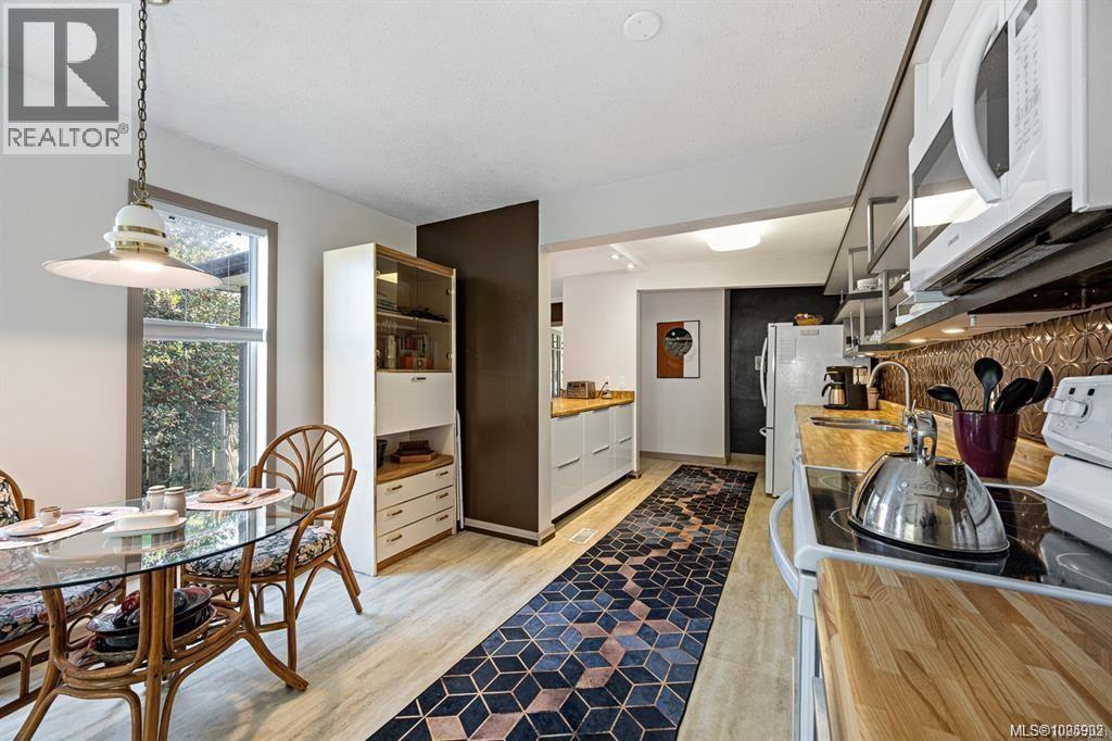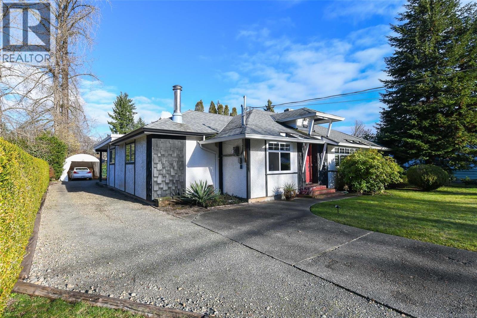 Welcome Home to 1180 Willemar Ave in Courtenay. This home with new roofing sits on a large .48 acre rectangular lot, is centrally located, and extremely versatile with development potential, or opportunity to create the perfect spot for your family. Front road AND rear alley (with gas line) access along with R-SSMUH Zoning for potential fourplex, carriage home, suite, home occupation and more. The house sits 60ft back from the avenue, and has mature landscaping for privacy with beautiful trees and gardens. The front entrance opens to bright den and living room with newer windows and fireplace featuring 1940s Union Bay bricks. The renovated kitchen and dining room open to sunroom built from repurposed greenhouse glass. Large primary bedroom and 5pc bath, and 2 additional bedrooms. Laundry room opens to a studio space, which could also make a perfect future office. New flooring in bathroom, back bedroom and hall. Close to downtown restaurants, shopping, services and school. Book your showing today, or call Island Home Savers Real Estate Team for more information. (30385359)