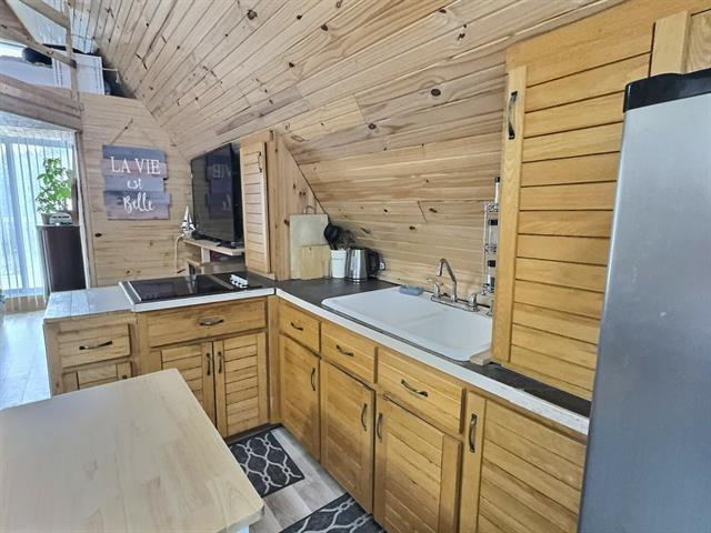 Rareté! Petite propriété idéale pour personne seule, couple ou comme chalet. Location court terme non permise. Accès au lac Massawippi (plage et descente à bateau) réservé aux résidents de Ste-Catherine-de-Hatley. Terrain boisé de 22 275 pc, près de l'autoroute et du village d'Ayers Cliff. Presque entièrement rénovée depuis 2020, aire ouverte, finition bois et plafond cathédrale. Vendue meublée avec spa. Maisonnette isolée et chauffée pour invités. Nouvelle fondation 2020 avec garage isolé/chauffé. Pas plus cher qu'un logement. Aucune offre répondue avant le 18 février 2026 pm, délai 48 h. (53492653)