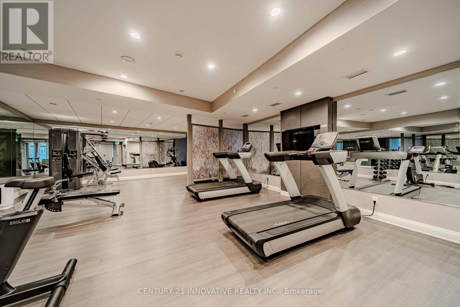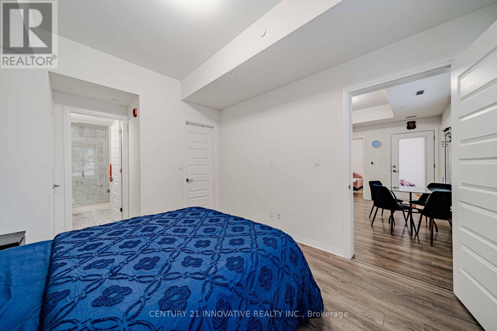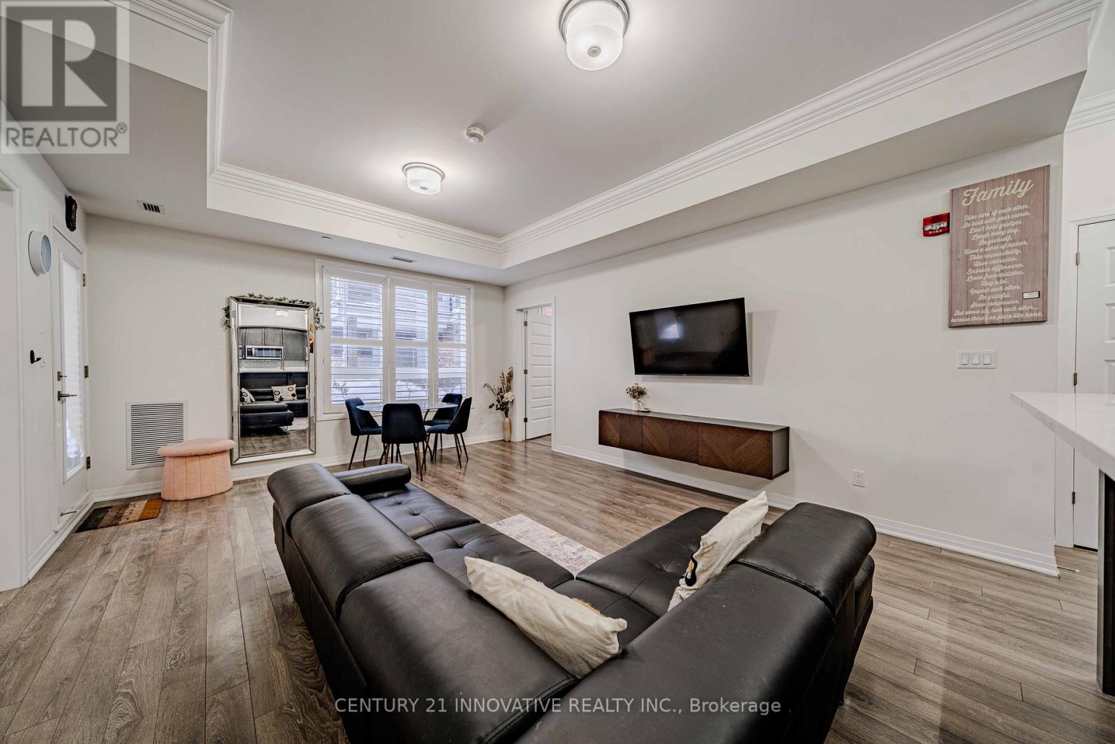 Welcome to the crown jewel of Markham in the highly sought-after community of Cornell, offering this beautifully upgraded 2-bedroom + den, 2 full bathroom home with a stunning open-concept layout designed for modern living. Enjoy a private walkout patio with convenient access to visitor parking, perfect for everyday ease and entertaining. With over $50k in upgrades, this immaculate unit features laminate flooring throughout, smooth 10-foot ceilings with elegant 7" crown moulding, and large windows that flood the space with natural light. The designer kitchen showcases quartz countertops, a large island, ceramic backsplash, single undermount sink, and an oversized custom builder pantry, while the upgraded bathrooms provide spa-like finishes including quartz countertops, raised vanities with extra storage, glass walk-in shower with full-height tile and pot lighting, high-efficiency dual flush toilets, premium fixtures, and large-format stone floor tiles. Additional highlights include a spacious primary bedroom with walk-in closet, custom fitted double-door closet in the second bedroom, California shutters throughout, full-size stainless steel laundry with steamer feature, high-efficiency water heater, and internet included in condo fees. Residents enjoy excellent building amenities including a party room with pool table, fully equipped fitness centre, and rooftop BBQ patio. Includes 1 parking space and 1 locker, all appliances, electrical light fixtures, and window coverings, and is ideally located close to transit, schools, community centre, library, hospital, and parks, offering the perfect blend of comfort, convenience, and upscale community living. (42146968)