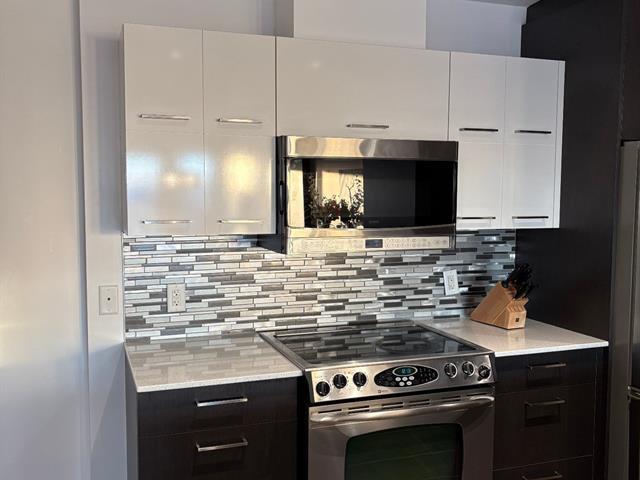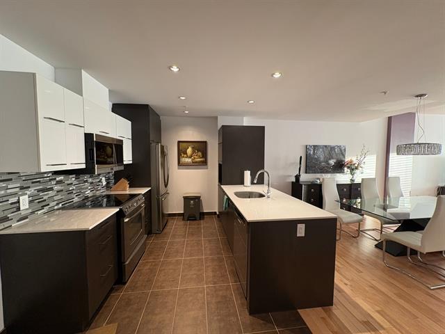 St-Laurent river view. Beautiful, spacious, recently built condo that's very bright, even in winter (south-facing)! High ceilings. Two bedrooms plus a other room for working space. Two bathrooms, one ensuite to the master bedroom. Large walk-in closet. Central air conditioning (new in 2025). Storage space upstairs. Indoor parking for two cars in tandem. Elevator. Intercom. Well-managed, modern condominium: built in 2013. Close to amenities (buses, schools, hospitals, shopping centers, Jacques Cartier Beach Park, etc.). (46528411)
