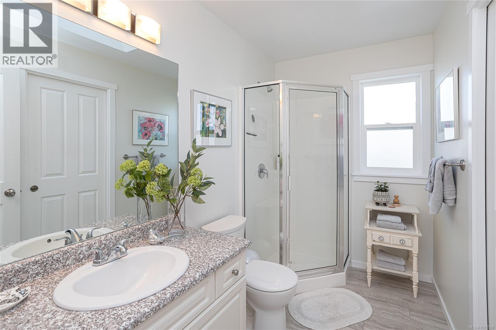Discover peaceful, panoramic ocean views overlooking Saanichton Bay from this immaculate 2-bedroom, 2-bath home offering 1,400 sq. ft. of comfortable one-level living in the desirable 45+ gated community of Hummingbird Village. This is truly one of the premier homes in the complex, showcasing stunning vistas of Saanichton Bay, James Island, and beyond. Inside, you’ll find a generous living room with high ceilings a cozy gas fireplace, a spacious dining area with vaulted ceilings, and access to a private deck perfectly positioned to take in the scenery. The modern kitchen features an eat-up bar, abundant cabinetry, and excellent storage. The primary bedroom offers a large walk-in closet and a bright ensuite with a skylight, while the additional guest bedroom also enjoys its own ensuite—ideal for visitors or flexible living. A roomy laundry area and a large double garage with a workbench and smart storage solutions add to the home’s convenience. Additional features include a heated, insulated crawlspace for ample storage and a beautifully landscaped, fenced, low-maintenance yard. Assembled onsite with conventional construction and a poured concrete foundation, this home offers quality and peace of mind. Hummingbird Village is an intimate enclave of just 29 homes situated on leasehold land—offering million-dollar views at an accessible price point. Ideally located close to Saanichton, the airport, Sidney, and BC Ferries. Come experience the tranquility and beauty of this exceptional property—you won’t be disappointed. (30385410)