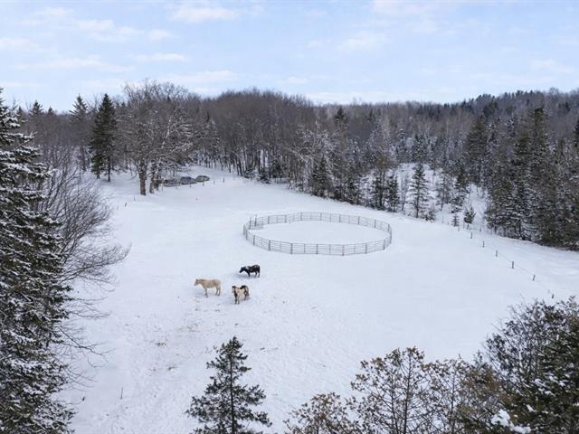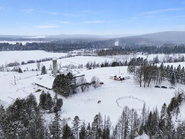 Valcourt (Estrie) : Magnificent 98.41-acre farm (116.49 arpents) featuring a renovated three-bedroom residence set back from the road, offering privacy and breathtaking countryside views. The property includes a large barn/stable currently used as an indoor riding arena (with a potential capacity of 40 to 50 cows) as well as two spacious garages. The land consists of approximately two-thirds mature woodland with maple syrup production potential on about 30 acres, and one-third fenced pasture. Numerous improvements have been made, including a new septic system installed in 2022 and an electrical panel replaced around 2019. GST/QST must be added to the asking price (47611563)