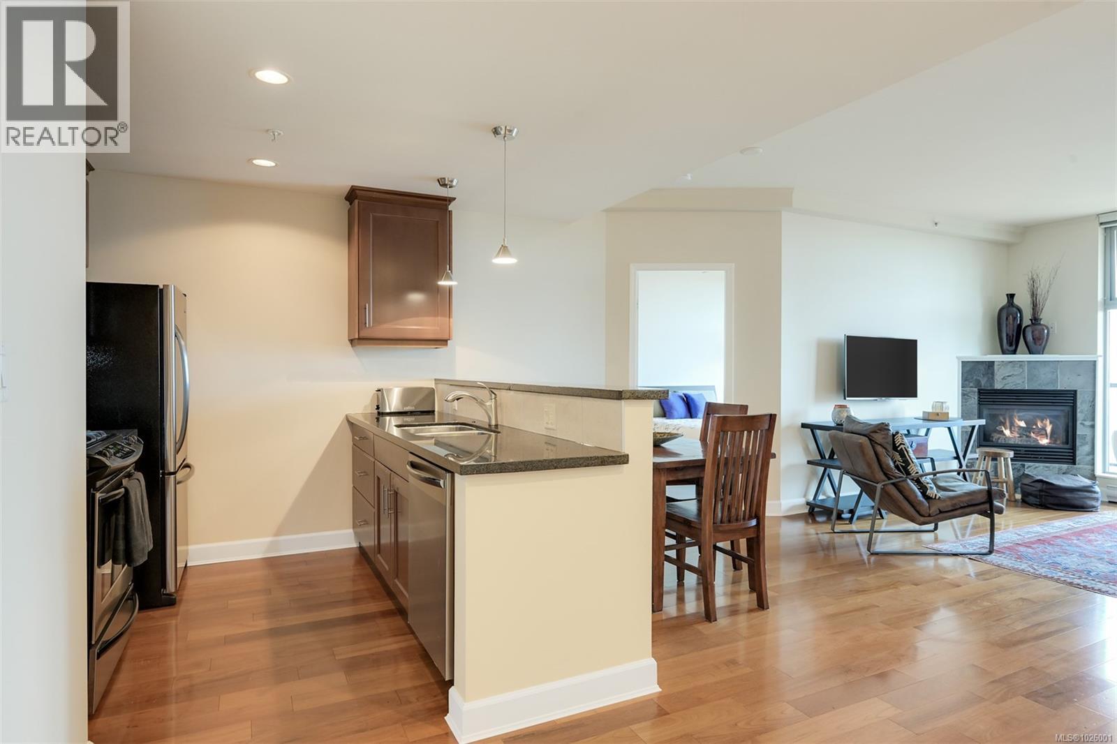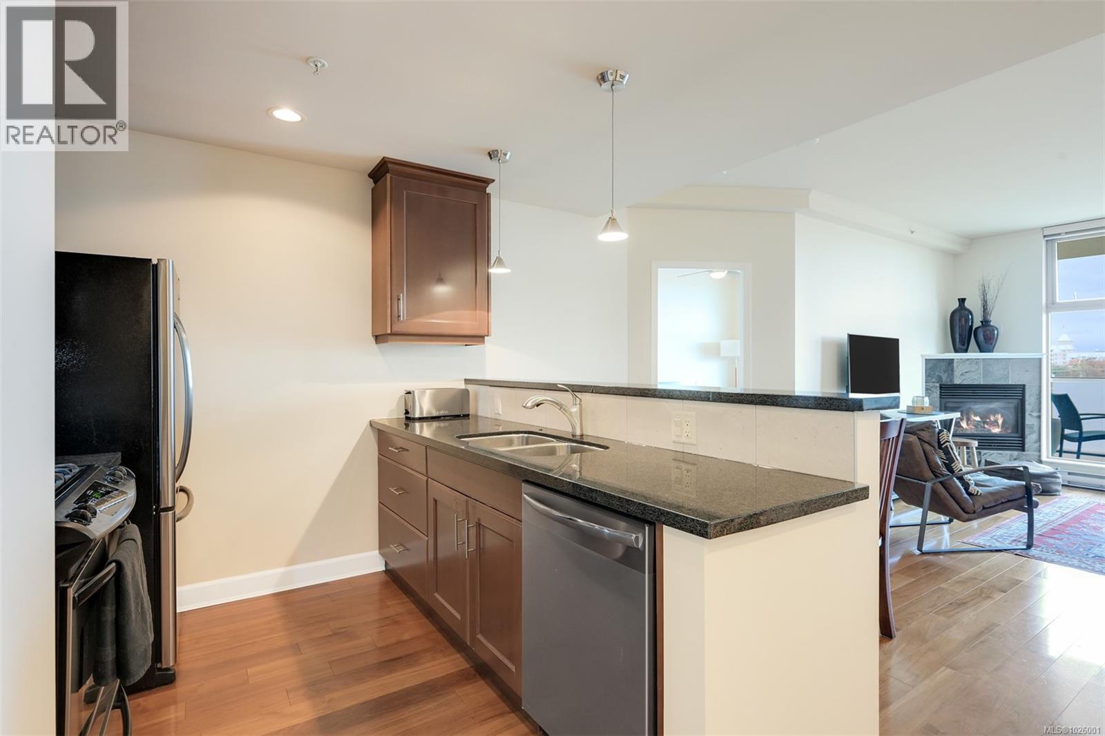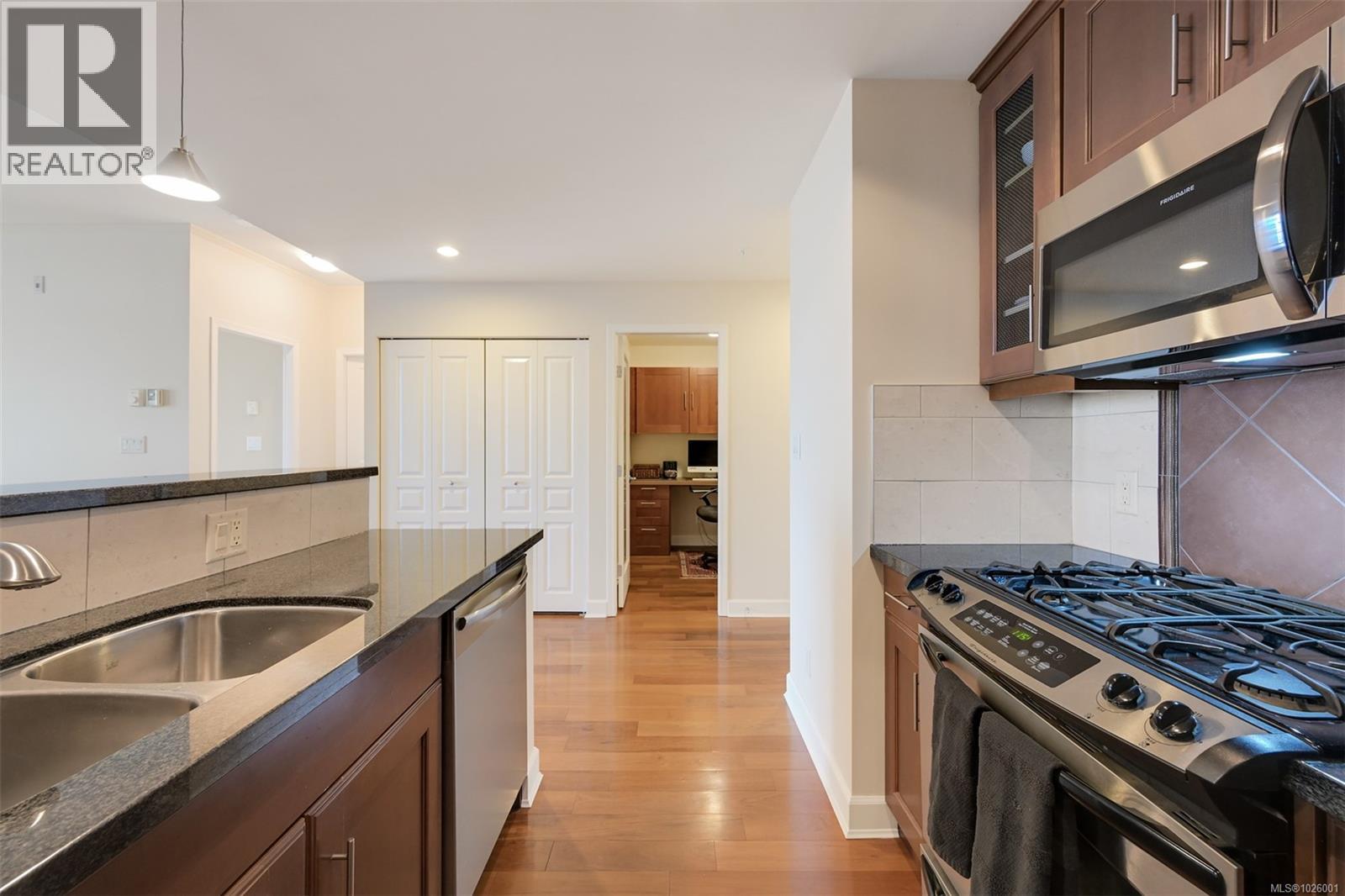 Enjoy a superb walkable lifestyle in the heart of one of Victoria’s most desirable neighbourhoods, James Bay! This well cared for suite offers an attractive layout that includes two bedrooms plus a dedicated home office with built-in desk and storage space. The open living area features a cozy gas corner fireplace, kitchen with gas cooktop and stone countertops and access to the entertainment sized covered balcony with gas BBQ hookup and open city views toward the Legislature and distant mountains beyond. The generously sized primary bedroom can accommodate a king sized bed and the well appointed ensuite bath offers a large storage vanity and separate walk-in shower and soaker tub. The Vicino is a quality 2007 built concrete low-rise building situated just steps from grocery shopping, restaurants, coffee shops and more and is walkable to Downtown and the Inner Harbour as well as the Dallas Road waterfront. Secure underground parking and storage are included and two pets are welcomed! (30386306)