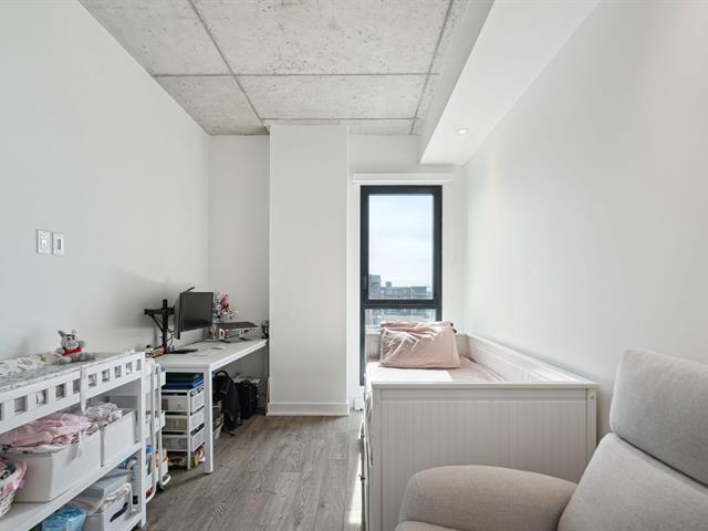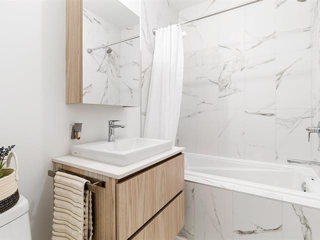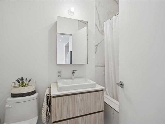 It is the only apartment in the building offering two indoor parking spaces. The kitchen, modern and impeccable, is equipped with high-end appliances. The master bedroom is spacious, featuring a large walk-in closet and an ensuite bathroom. The second bedroom is also generously sized, with its own walk-in closet. All windows are equipped with curtains, and there is a large balcony to enjoy the beautiful view. Additionally, it features an indoor storage space, a complimentary gym, and two common areas. Close to supermarkets (IGA), parks, schools, etc. Don't miss out on this opportunity! (46090694)