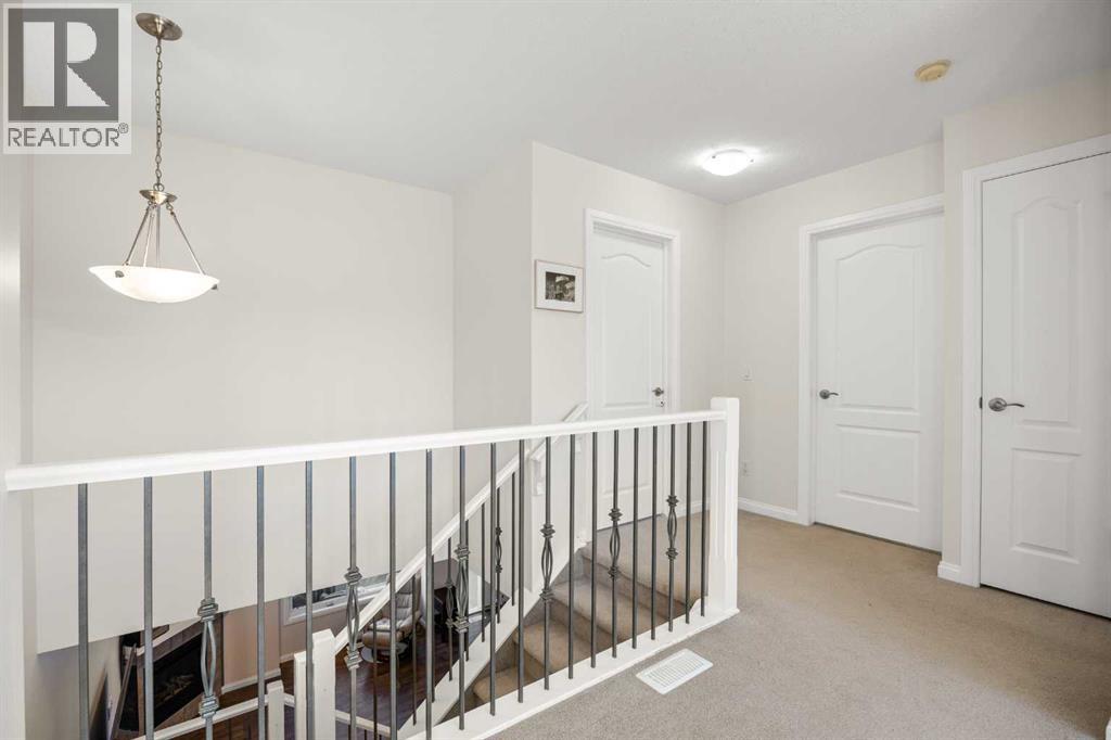 Welcome to this inviting 2-storey townhome in the heart of Royal Oak, offering bright south-facing exposure and everyday convenience—just a short walk to the C-Train station, nearby shopping, parks, and local amenities. The complex also features a beautifully landscaped central courtyard, providing a peaceful outdoor space to enjoy in the spring and summer months.The main level features 9 ft high ceilings and a Den just off the entrance, perfect as a home office or study space. Walk into the heart of the home where the open concept Living, Dining, and Kitchen areas create a bright, airy atmosphere. The well-appointed Kitchen offers quartz countertops, a raised eating bar, stainless steel appliances, and stylish tile backsplash. The spacious Living Room with cozy gas fireplace and the Dining Area open onto a private balcony, an ideal spot for summer BBQs or relaxing outdoors. This level is complete with a powder room and a Mud Room that leads directly to the single attached garage.The spacious South-facing Primary Bedroom features a walk-in closet with organizer and a 4-piece ensuite bath. This floor is finished with a second Bedroom and an additional 4-piece Bathroom. An open Loft that is great as a second family room that can be converted as 3rd bedroom if needed. Owner is willing to change it to 3rd bedroom if buyer prefers.The Basement is unfinished with a large window, offering excellent potential for future development to suit your needs.Located in a well-managed complex, this home combines a comfortable interior layout with a superb Royal Oak location—just minutes to the C-Train station, strip mall, parks, school, Stoney Trail, and Royal Oak Shopping Centre. (31647253)