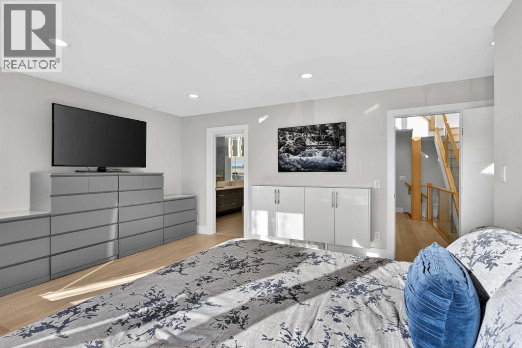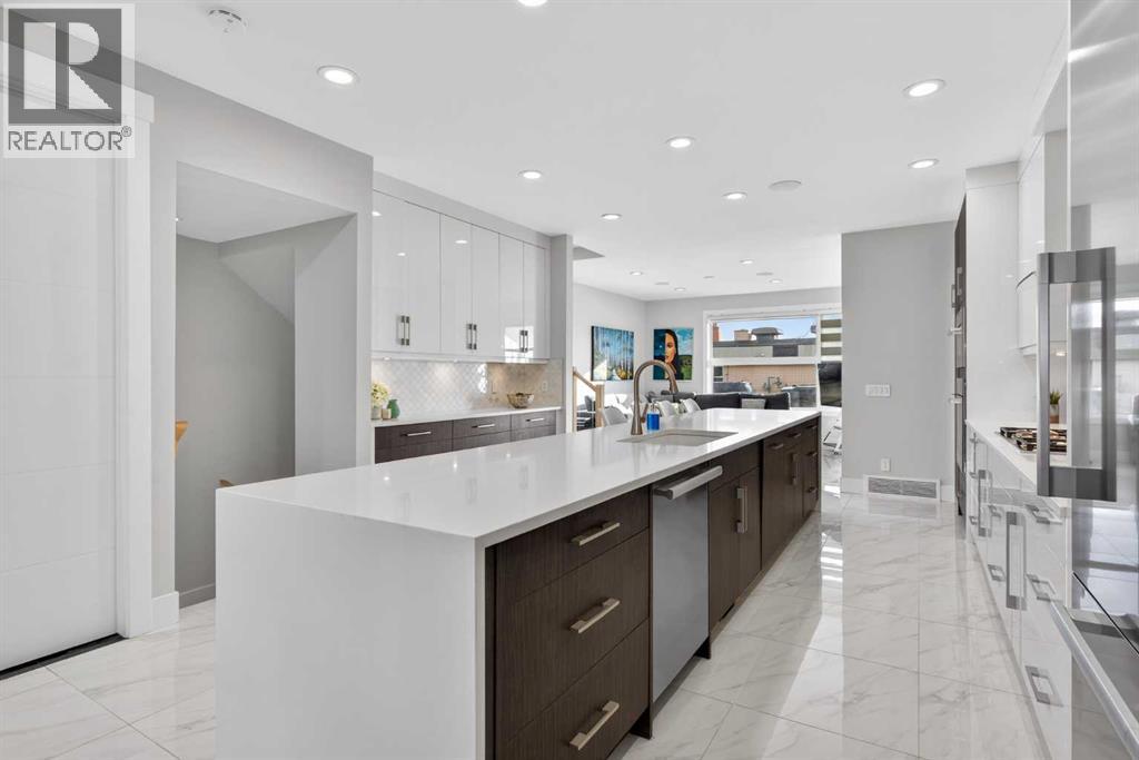 Here in the coveted inner city neighbourhood of West Hillhurst is where you’ll find your new home…this incredible 3-storey semi-detached loaded with the finest of luxury living, in this prime location only minutes to Kensington, Bow River pathway system & downtown. With over 3300sqft of living space spread over 4 levels, this stunning home enjoys a total of 5 bedrooms & 5 bathrooms, quartz countertops & central air, wide-plank engineered hardwood floors & panoramic city views as far as the eye can see! Showcased by expansive 9ft ceilings, you’ll just love the design of the main floor with its wonderful open flow & heated ceramic tile floors, from the airy living room with South-facing living room to the spacious dining room with sleek contemporary fireplace, & the fully-loaded kitchen with massive centre island with under-counter cabinets, top-of-the line Miele stainless steel appliances…including gas cooktop & built-in convection oven, bar area with wine fridge, walk-in pantry & custom cabinets highlighted by 2 huge pull-out spice/pantries. There are 3 bedrooms & 2 full bathrooms on the 2nd level…including the South-facing owners’ retreat with 2 walk-in closets, built-in shoe cabinet, floor-to-ceiling windows & spa-inspired ensuite with heated floors & quartz-topped double vanities, free-standing soaker tub & fantastic walk-in glass steam shower. Another bedroom with walk-in closet & its own private ensuite is on the top floor, plus a dynamite loft with skylight & South-facing balcony from where you can check out the downtown skyline & the surrounding neighbourhood. The lower level is beautifully finished with a 5th bedroom with walk-in closet, full bathroom with glass shower & terrific rec room area. Additional features include the 2nd floor laundry room with stacking Samsung steam washer & dryer, built-in ceiling speakers & flat ceilings, built-in storage cabinets in both the front foyer & rear mudroom, roughed-in radon system, closet organizers, heated tile floo rs in the main/2nd floor/3rd floor bathrooms, closet organizers & fully fenced backyard with deck (complete with gas bbq line) & insulated/drywalled detached 2 car garage with 220V wiring. Madeleine D’Houet School is steps from your front door & you’re walking distance to popular neighbourhood parks & playgrounds. A truly amazing opportunity you won’t want to miss…to make the home of your dreams come true! (31645843)