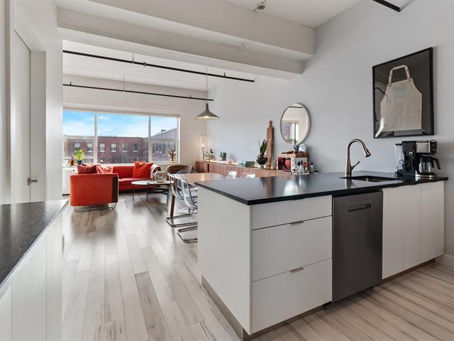 Discover this magnificent two-story condo located in the iconic Biscuiterie Viau. This property includes a bright closed bedroom, a fully renovated kitchen, and a huge mezzanine that can accommodate a second bedroom, an office, a living room, etc. You will be charmed by its large living space bathed in natural light. Its highlights: large private terrace, garage and storage space included, turnkey property, windows on three sides, close to all amenities and the metro. A visit may just trigger the love at first sight you've been waiting for! (53591379)