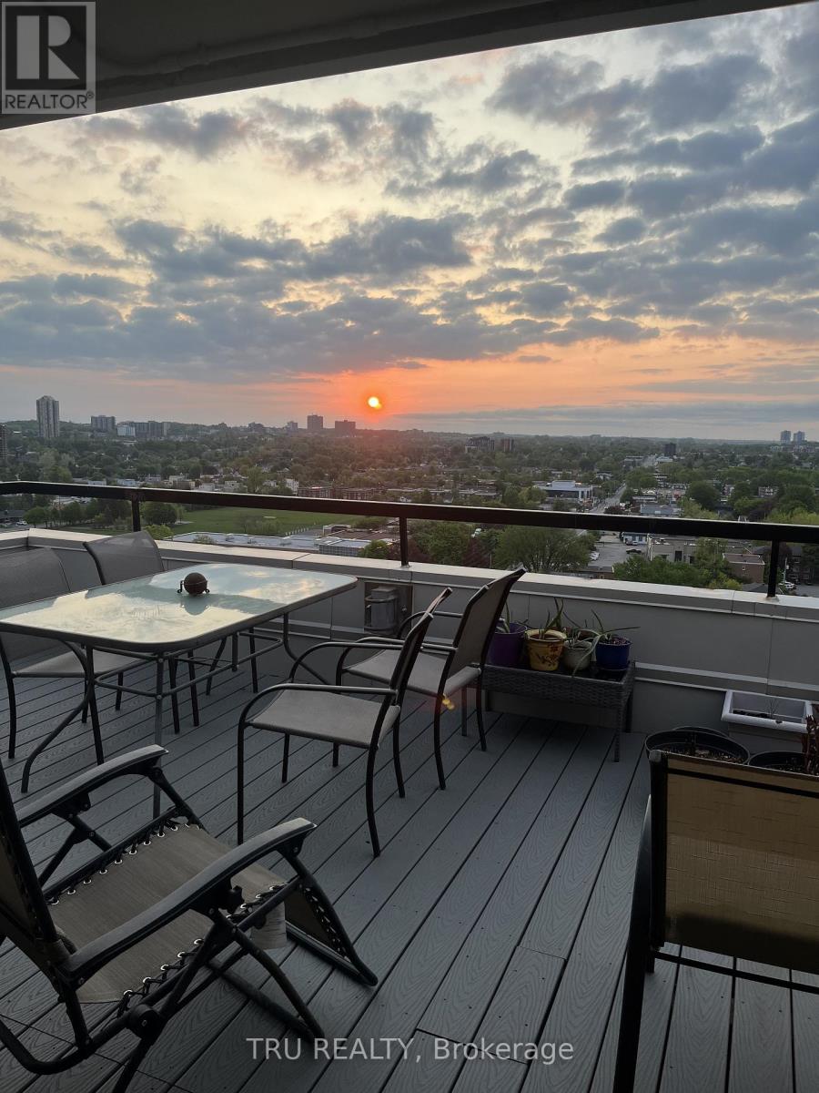 Must see - rare exceptional offering: a true 3 bedroom / 2 full bathroom penthouse in a class of its own. This pristine corner top floor suite with wrap around deck feels like a bungalow in the sky. The customized living spaces with vaulted ceilings bring drama & volume into every room. Great room design: living, dining & kitchen surrounded by windows create a fabulous entertaining space - opening onto the 400+ sq ft terrace. Calling chefs & gardeners! The custom high-quality kitchen with stainless appliances/glass backsplash is designed with pot drawers, pantry, an island, custom storage spaces & lit showcase tower. The bathrooms feature built-in storage, one with jet tub and one with shower. Main light fixtures have been upgraded to LED pot lights on dimmers. Enjoy your new HVAC mini split (b/board heat still in place). The second bedroom includes a rich built-in desk and Murphy bed, providing exceptional flexibility. Bedrooms have big closets and main closets have mirrored doors. Enjoy the seasons (new deck) from your private & partially covered terrace - dramatic sunrises & sunsets & sweeping views of the Gatineau hills, Ottawa river at St. Patrick St bridge, overlooking beautifully treed surroundings. Gardening is easy with hose hookup. This unit also has a large private locker conveniently located immediately above unit, and one underground parking space. The complex features gorgeous gardens, visitor parking; the resort lifestyle amenities include large salt water pool, sauna, gym, party/meeting rooms, library, on-site management & superintendents - plus convenience store, personal services shops such as nail, hair and barber studios, cleaning service, & computer firm. Situated within blocks of Beechwood shops, Riverain Park & Rideau River biking trails & tennis club, bridge to Sandy Hill, & across the street from Loblaws & Green Fresh with public transit at the door. Make a statement! Discover downtown living at an affordable price! (42150241)