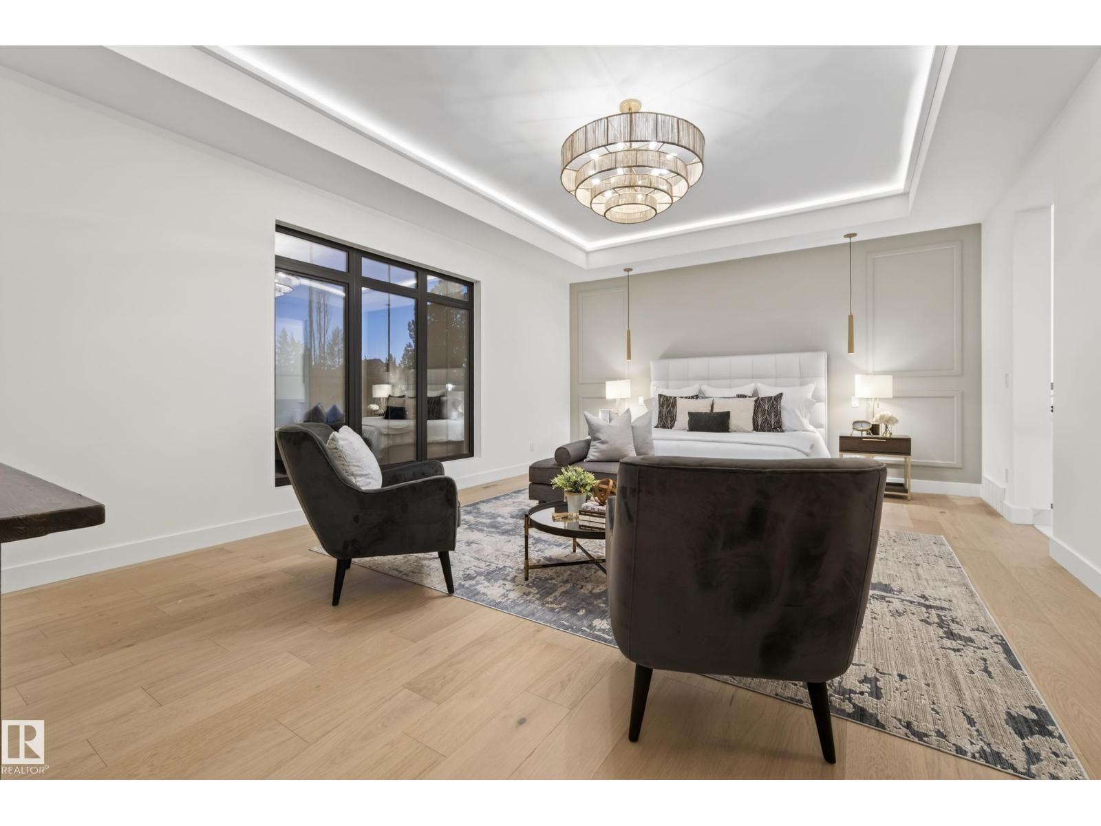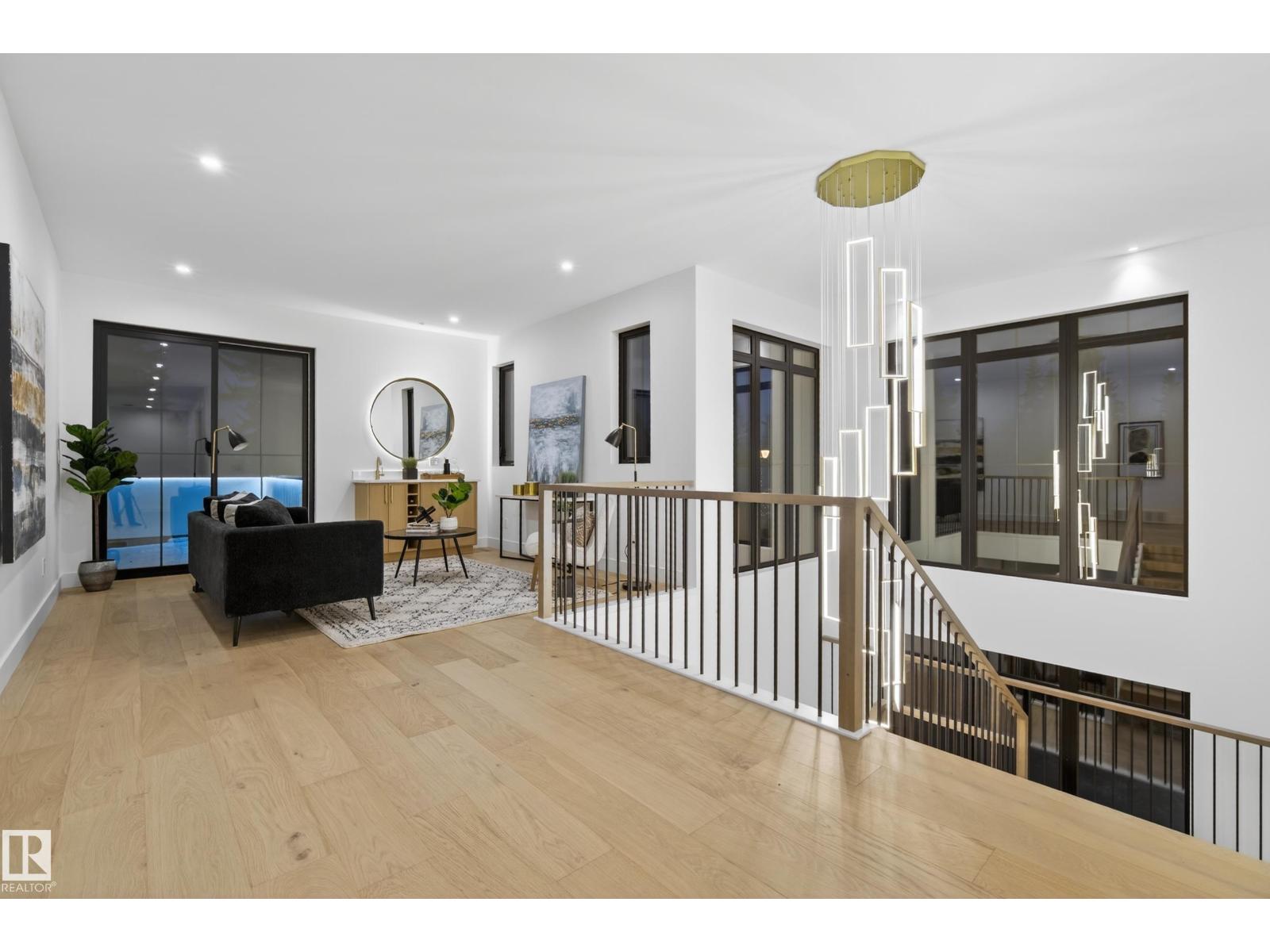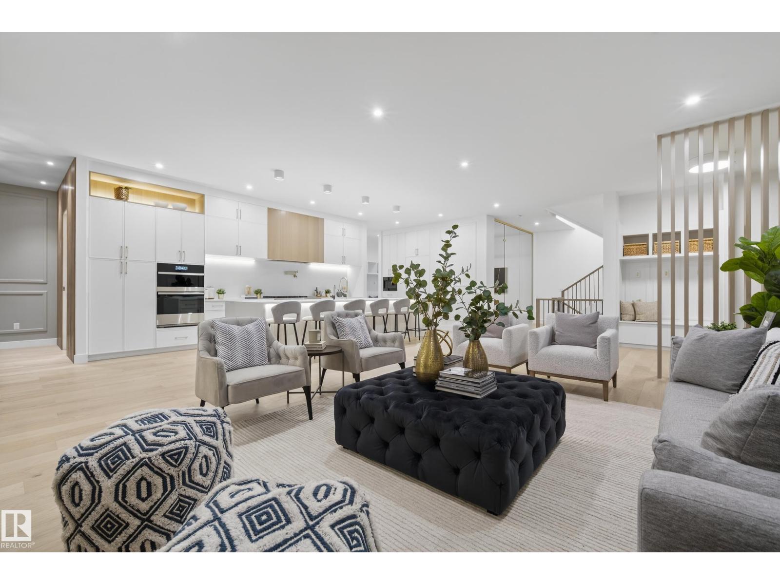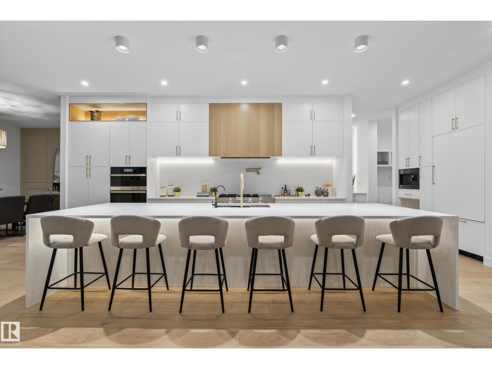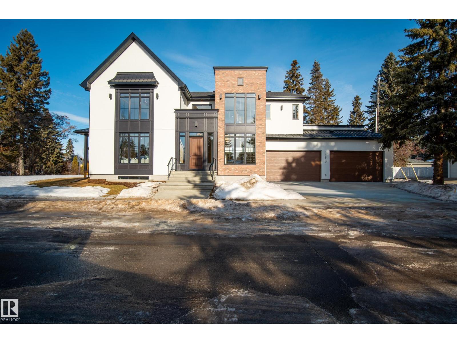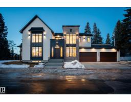 Architecturally striking luxury residence by Evolution Custom Homes showcasing refined design and exceptional craftsmanship throughout. Dramatic 10 ft ceilings, an open rise feature staircase, solid core 8 ft doors, drywall window returns and a statement 48 inch gas fireplace create an elevated main living experience. The chef’s kitchen features white oak custom cabinetry, a premium JennAir and Miele integrated appliance package, a 14 ft dual waterfall island, full height quartz backsplash, butler’s pantry and built in coffee station. A rare fumoir (cigar and brandy room) is professionally vented and roughed in for a humidor. The oversized heated garage is designed for enthusiasts with car lift capability, EV charging, workshop space, custom storage and hot and cold taps. Two private rooftop terraces offer integrated lighting plus gas and water rough ins, ideal for entertaining. A truly, one of a kind property in Edmonton's most elite, river-valley neighbourhoods. (33835002)
