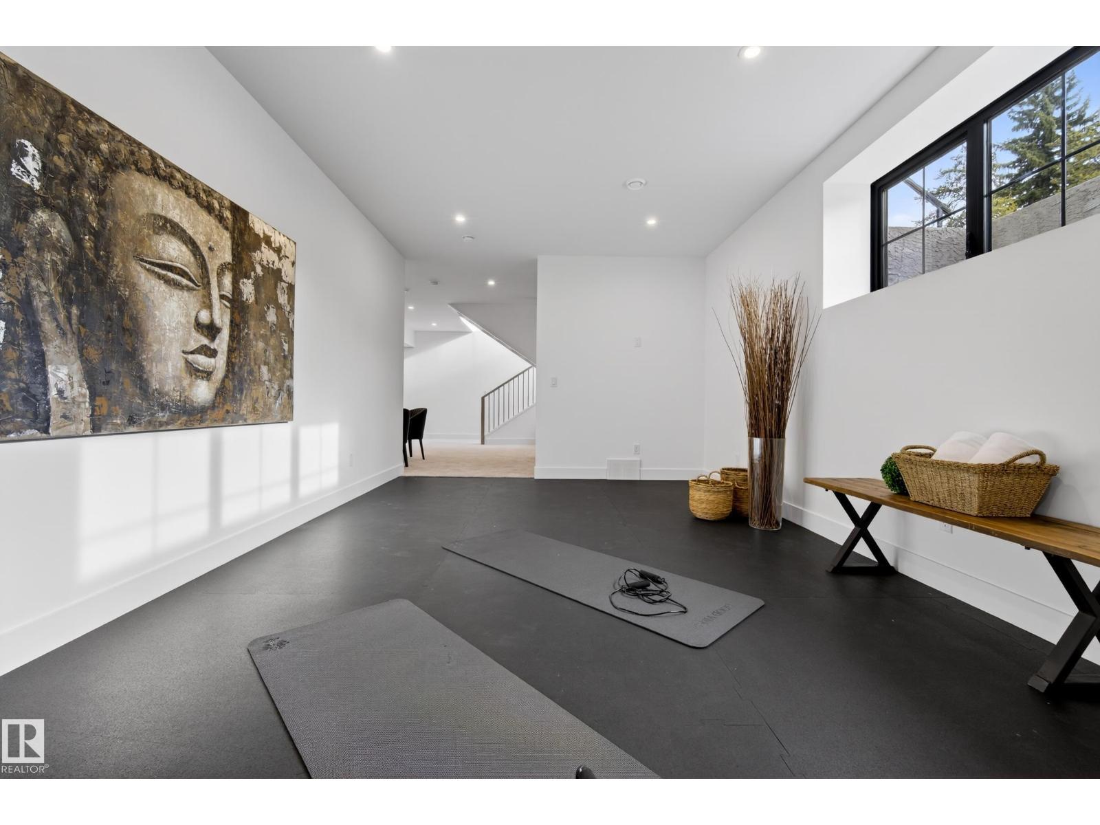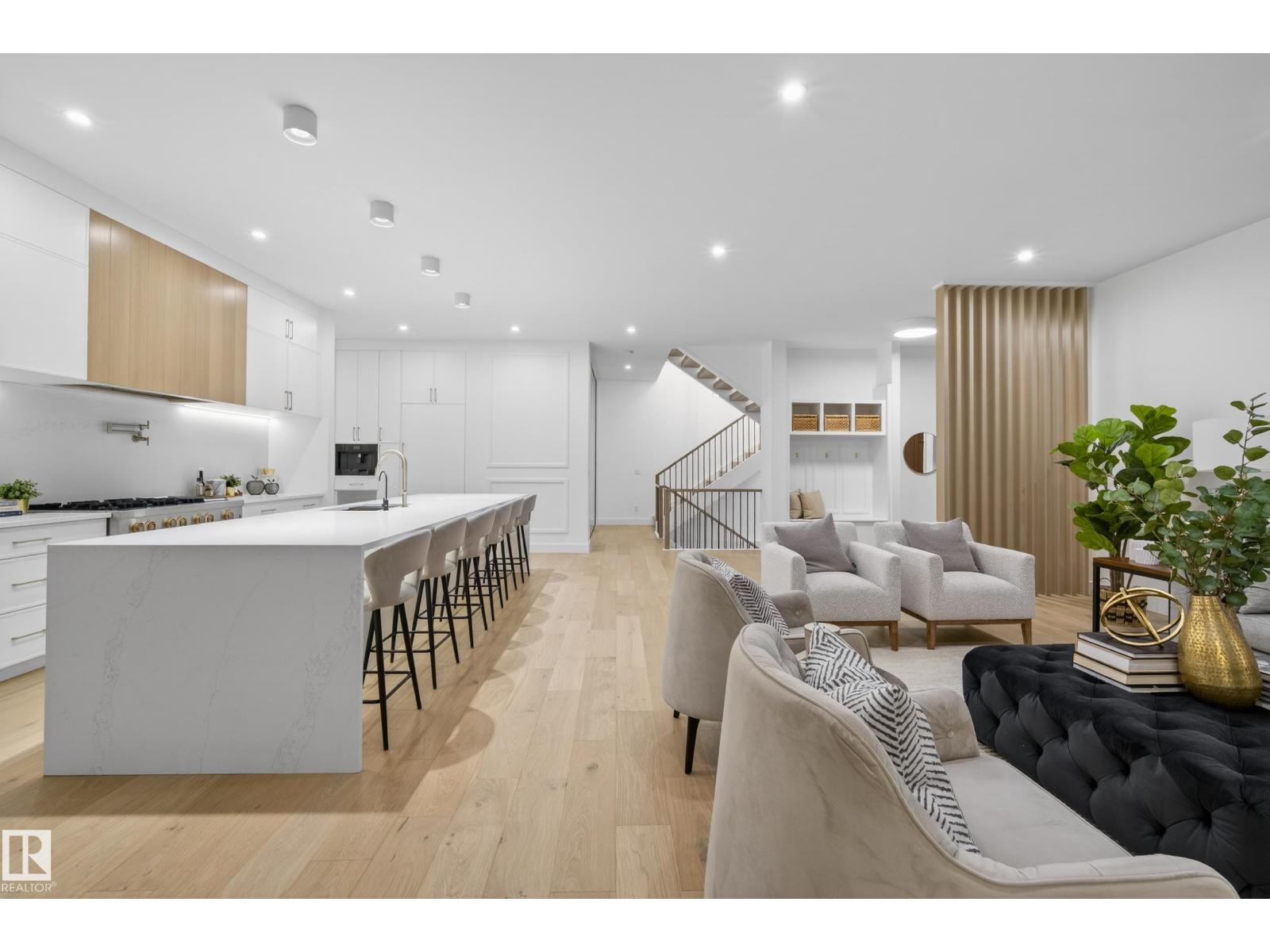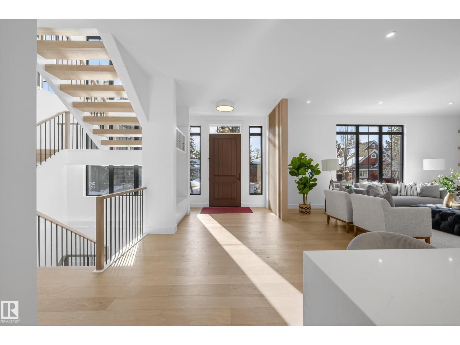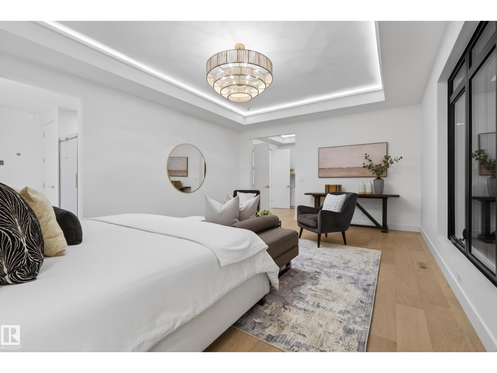Architecturally striking luxury residence by Evolution Custom Homes showcasing refined design and exceptional craftsmanship throughout. Dramatic 10 ft ceilings, an open rise feature staircase, solid core 8 ft doors, drywall window returns and a statement 48 inch gas fireplace create an elevated main living experience. The chef’s kitchen features white oak custom cabinetry, a premium JennAir and Miele integrated appliance package, a 14 ft dual waterfall island, full height quartz backsplash, butler’s pantry and built in coffee station. A rare fumoir (cigar and brandy room) is professionally vented and roughed in for a humidor. The oversized heated garage is designed for enthusiasts with car lift capability, EV charging, workshop space, custom storage and hot and cold taps. Two private rooftop terraces offer integrated lighting plus gas and water rough ins, ideal for entertaining. A truly, one of a kind property in Edmonton's most elite, river-valley neighbourhoods. (33835002)