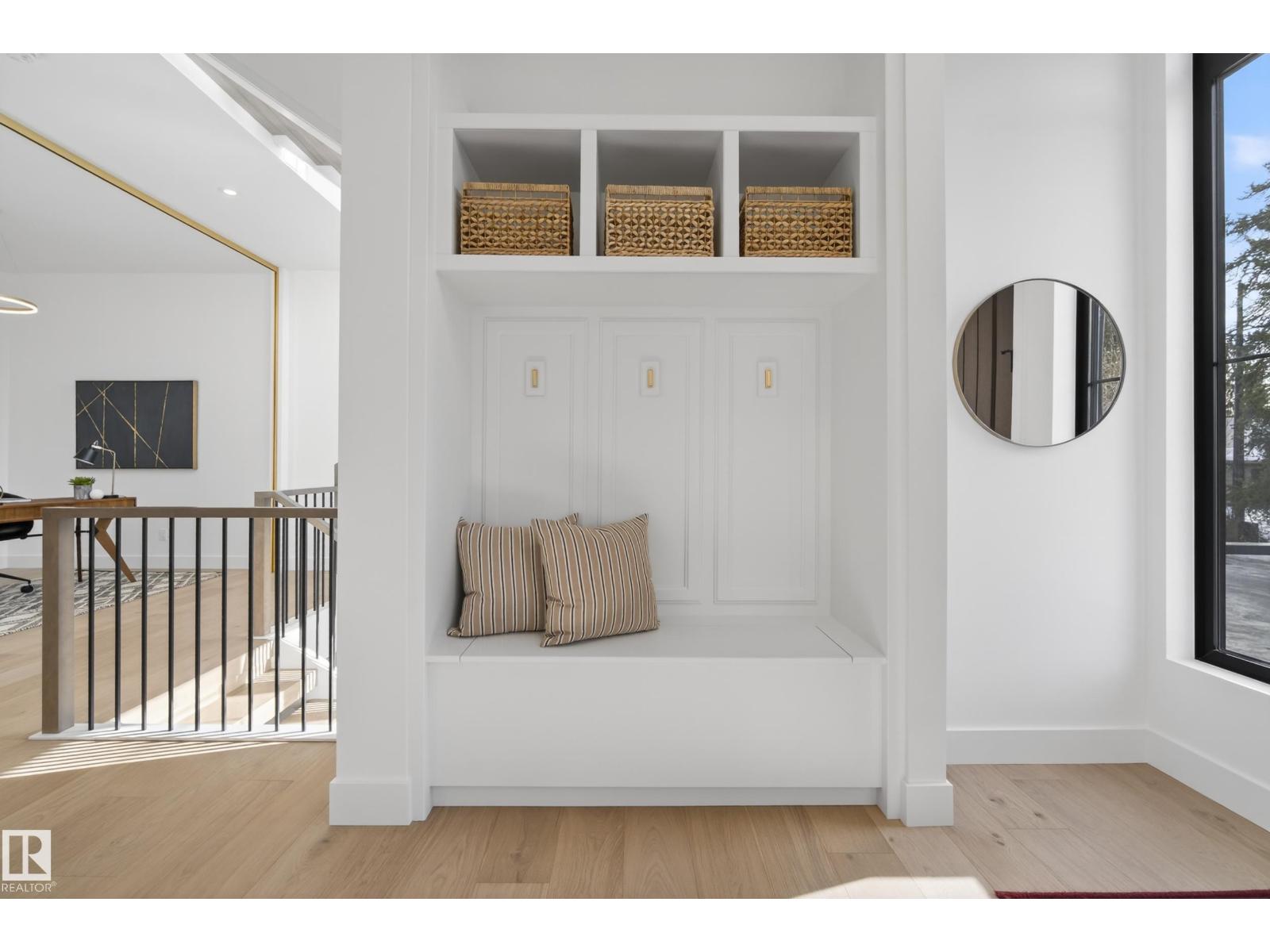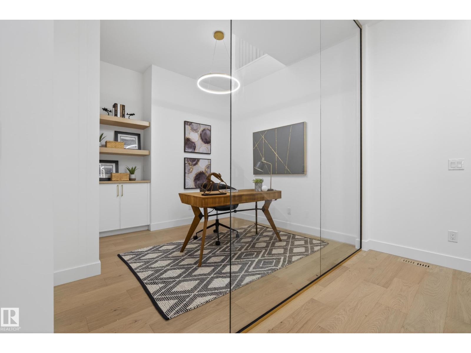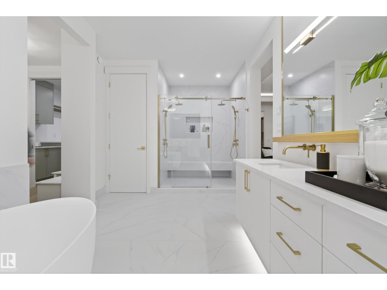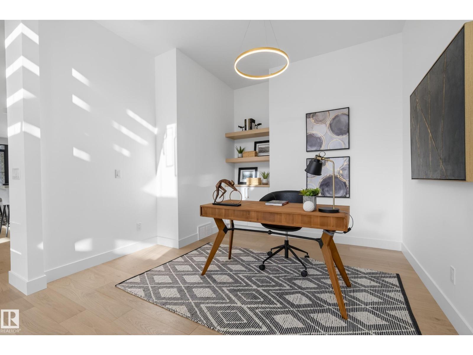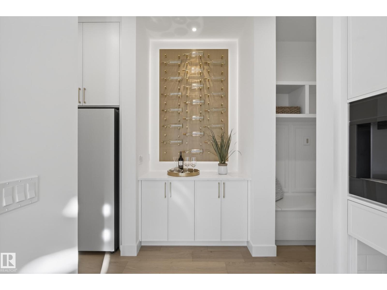Architecturally striking luxury residence by Evolution Custom Homes showcasing refined design and exceptional craftsmanship throughout. Dramatic 10 ft ceilings, an open rise feature staircase, solid core 8 ft doors, drywall window returns and a statement 48 inch gas fireplace create an elevated main living experience. The chef’s kitchen features white oak custom cabinetry, a premium JennAir and Miele integrated appliance package, a 14 ft dual waterfall island, full height quartz backsplash, butler’s pantry and built in coffee station. A rare fumoir (cigar and brandy room) is professionally vented and roughed in for a humidor. The oversized heated garage is designed for enthusiasts with car lift capability, EV charging, workshop space, custom storage and hot and cold taps. Two private rooftop terraces offer integrated lighting plus gas and water rough ins, ideal for entertaining. A truly, one of a kind property in Edmonton's most elite, river-valley neighbourhoods. (33835002)