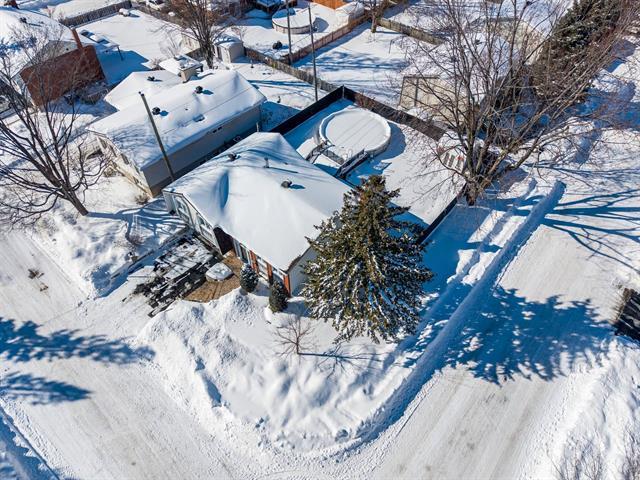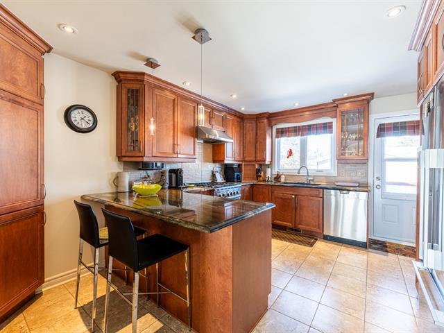 Impeccable turnkey corner house, sun-filled and meticulously maintained by only 2 owners since 1971! Features refined finishes: birch floors/cabinets, granite counters, and a luxury gas kitchen. Layout offers 4 beds, 2 living rooms, powder room, and gas fireplace. Large 7,160 sf landscaped/fenced lot with pool, patio, and shed. 2 epoxy garages, 2010 asphalt (sealed 2023), 2018 roof. Prime area blending quiet living with urban proximity: parks, STM/REM, clinics, shops, schools, and quick access to Hwy 20/40. The perfect balance of comfort and convenience! (40328860)