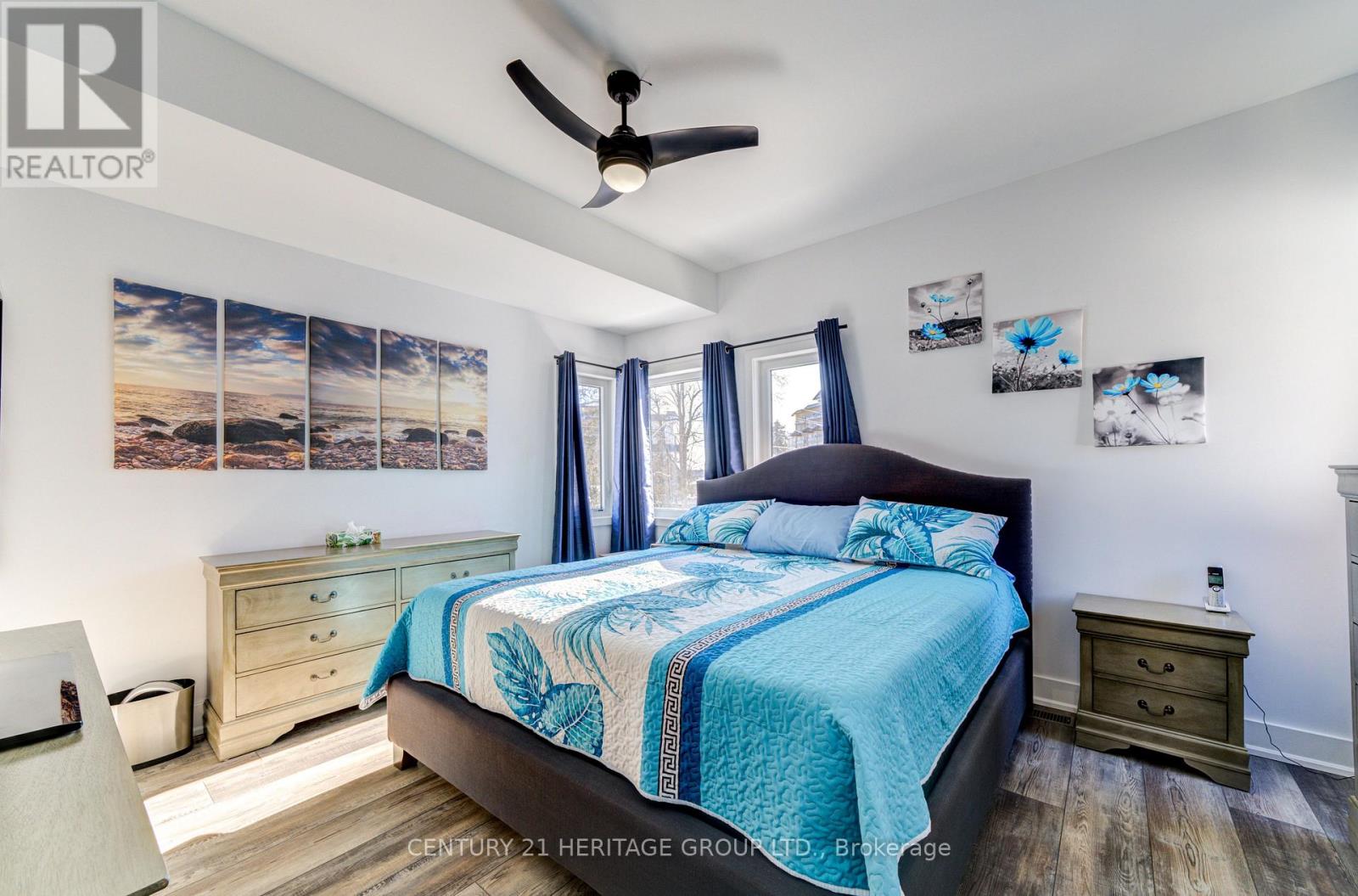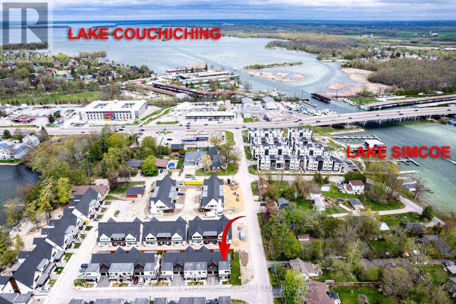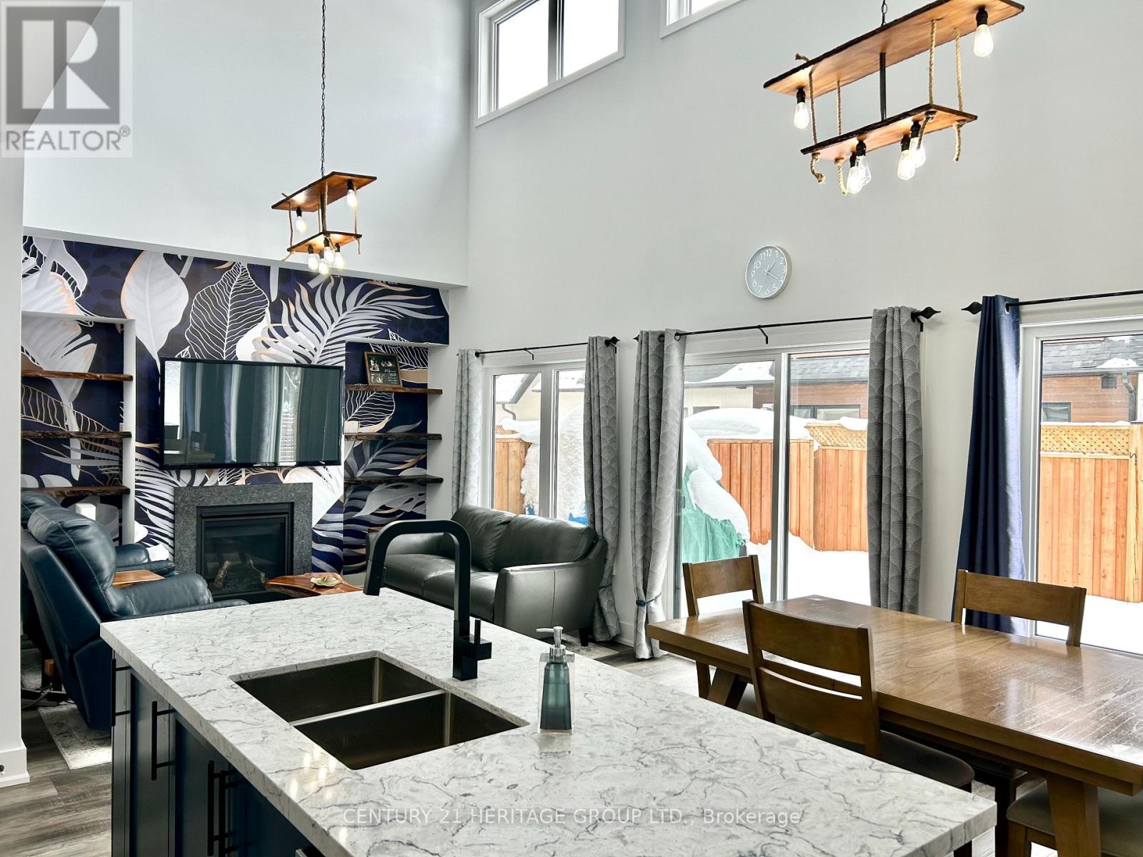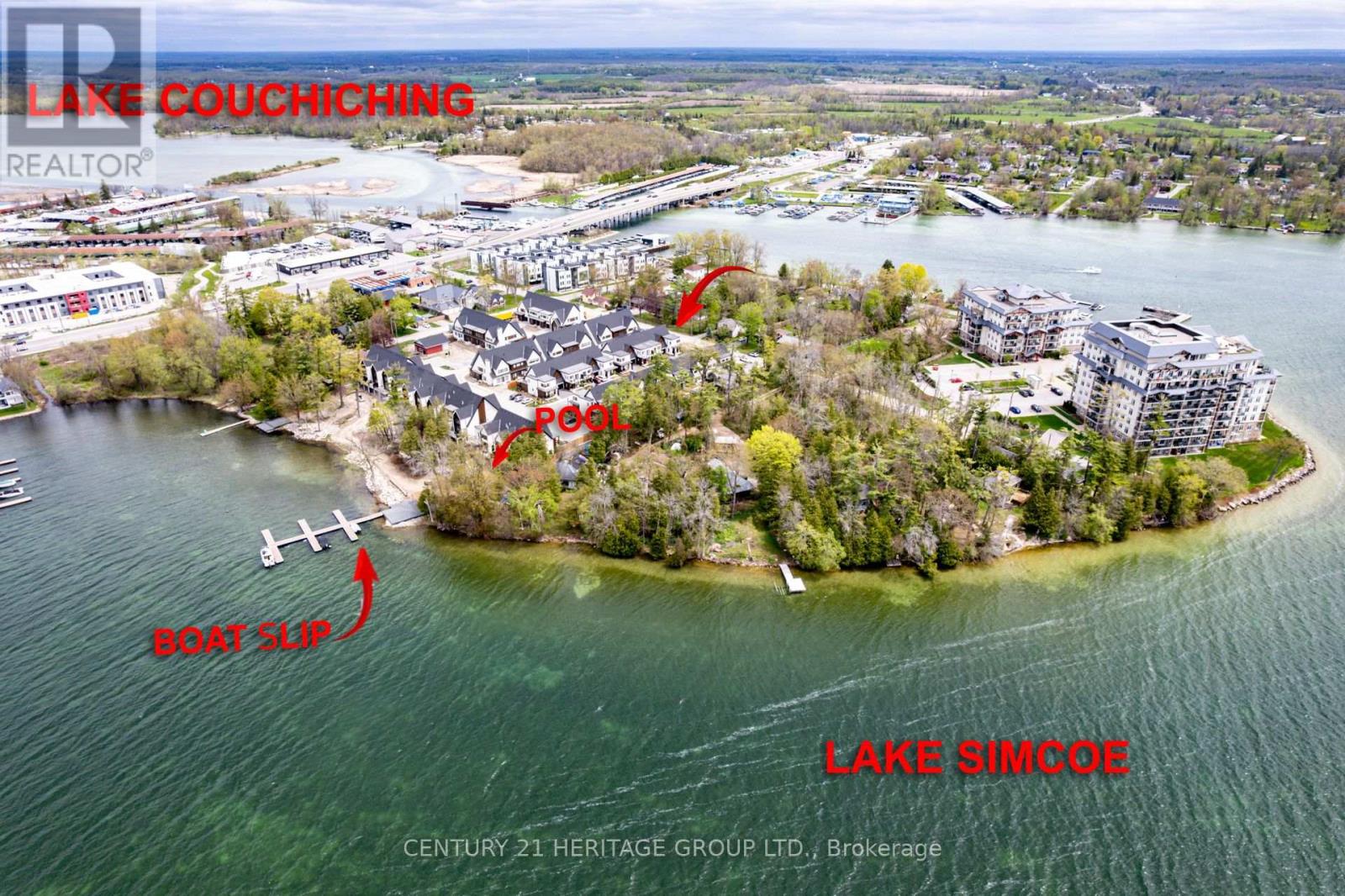 Welcome to Sophie's Landing, a sought-after gated waterfront community on Lake Simcoe in Orillia. This upgraded end-unit townhouse features 3 bedrooms, 2 full bathrooms, and a bright open-concept layout with soaring 18 ft ceilings in the living/dining area. Main floor bedroom with 4-pc bath offers flexibility for guests or multi-generational living. Modern kitchen with quartz counters, stainless steel appliances, and large island. Stylish vinyl cork flooring throughout. Private fenced backyard with no right-of-way easement, unlike interior units. Community amenities include lake access with private boat slips, dock, shoreline, and a new two story clubhouse with elevator, gym, shower, party room, patio, BBQ and outdoor pool. Steps to trails, parks, and Mara Provincial Park. Minutes to Casino Rama, downtown Orillia, shopping, and dining. Rare opportunity to own in this growing community. (42151723)