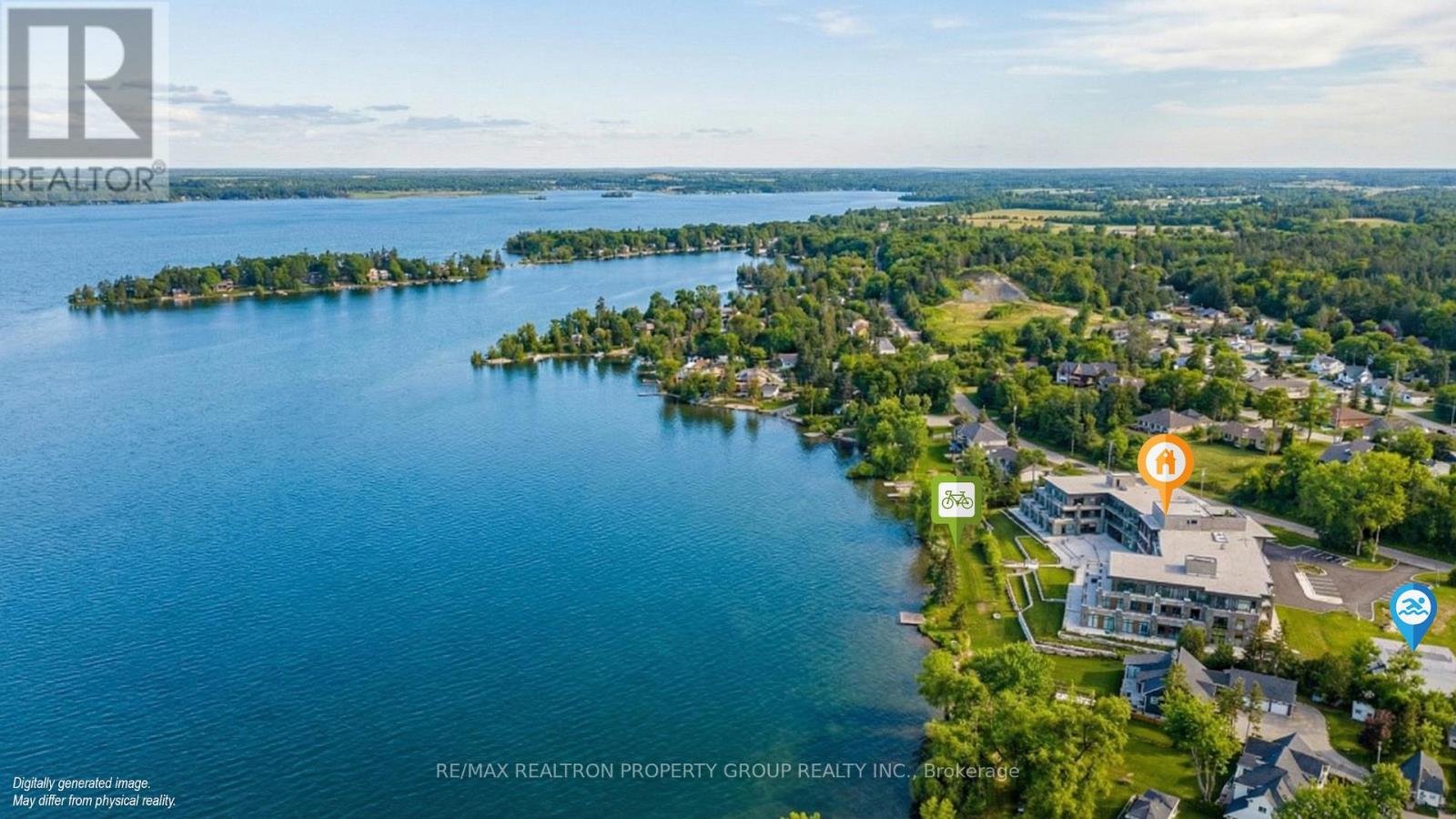 *Experience Waterfront Community Living in the Jewel of Kawarthas on Cameron Lake!** Discover this rare opportunity to own a stunning 2-bedroom plus den suite in The Moorings, where you can enjoy all the square footage of a cottage without the upkeep. This is the perfect investment for family recreation or year-round enjoyment, especially as you can acquire side-by-side suites! Enjoy a lakeside community with access to year round to "Victoria Trails" for winter ATVs, snowmobiling, hiking and biking and much more - something to do for the whole family all year! Spanning 1,149 sq ft, this thoughtfully designed residence caters to diverse lifestyle needs, with a den that offers a versatile space for a home office, guest room, or personal retreat - this is a sought-after floorplan. The open-concept layout is enhanced by 9 ft ceilings and picture windows, allowing natural light to fill every corner. The kitchen is a standout, featuring premium Kitchen Aid stainless steel appliances, including a gas stove, along with beautiful cabinetry and exquisite quartz countertops. The inviting dining and living areas, complete with a cozy gas fireplace, lead to a private walk-out balcony perfect for entertaining or unwinding. **Outstanding Amenities:** Enjoy a host of fantastic amenities that enhance your lifestyle. The upstairs lounge offers breathtaking unobstructed views, ideal for happy hour, while the exterior common area features a movie theater for gatherings. The beautifully landscaped areas include an outdoor pool and recreational spaces for tennis and pickleball. Set on the tranquil shores of Cameron Lake, you are just minutes from Lindsay and Bobcaygeon, and only 90 minutes from the GTA. This is not just a home but a lifestyle of luxurious waterfront living in Kawarthas-seize this outstanding opportunity to make it yours! At this price per square foot, you can enjoy all the comforts of a lakeside lifestyle in a turn-key home! (42151833)