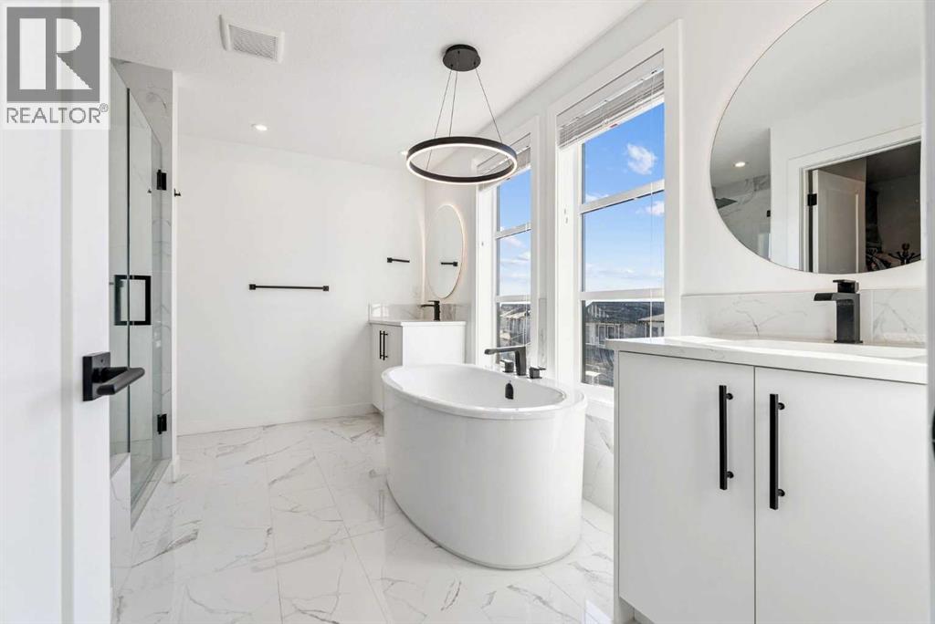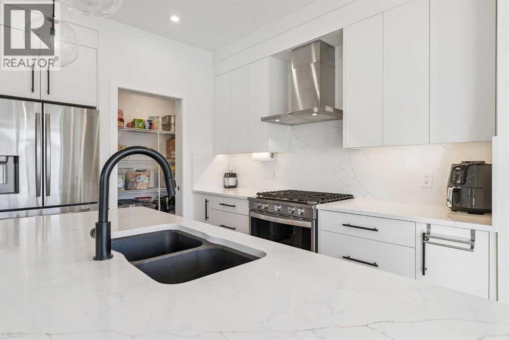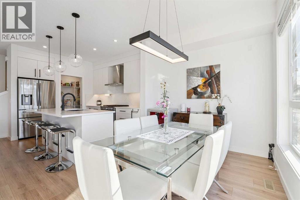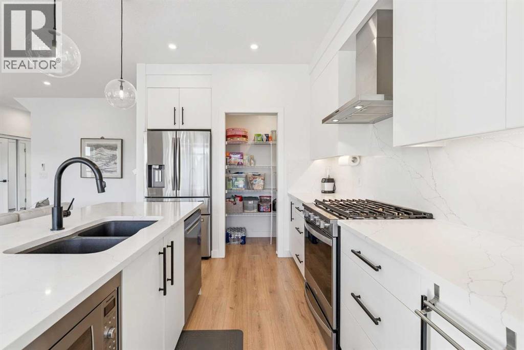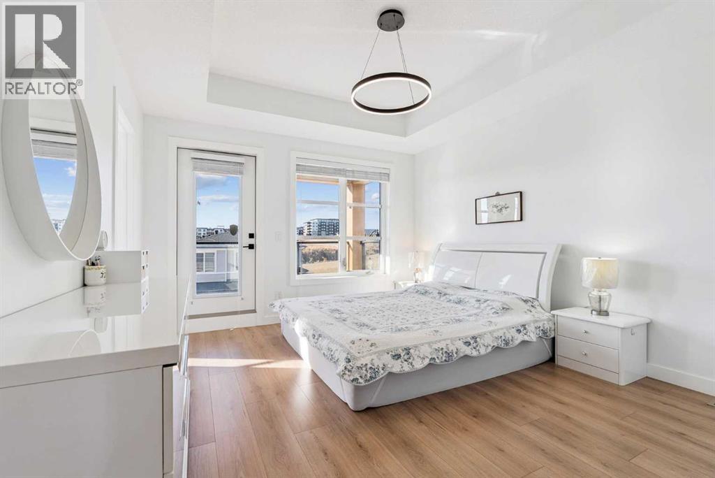 Experience elevated living in ARCOLA by Truman, a contemporary townhome community. It’s not just a townhouse, but it is more likely a luxury downsizing home where you can enjoy lifestyle with convenience and style. This END-UNIT home is perfectly positioned in a quiet neighbor providing more privacy and bit more space. It offers 2 balconies, 1 patio, over 2,400 sqft of living space including fully developed WALK-OUT basement, featuring 4 bedrooms (3+1) and 3.5 bathrooms. From the moment you step inside and greeted by gorgeous tiled foyer and 9ft ceiling, you’ll be wowed and appreciate the designer’s touch and bright, open-concept layout. Luxury vinyl prank flooring throughout in all three levels, and no more ugly carpet in this home. 9ft ceilings in main level and the basement. The spacious living area is filled with natural light and provides ample space for relaxing and entertaining. The kitchen is showcasing premium quartz countertop, stainless steel appliances, including T-shaped chimney and gas stove, generous cabinetry, spacious corner pantry, and a large central island with seating, plus there are dedicated dining area and convenient powder room to complete the main floor. Off to the balcony for alfresco lunch or evening wines or sunbathing. Upstairs, retreat to a spacious primary suite featuring a walk-in closet and a spa-inspired 5-piece ensuite with dual sinks and a deep soaker tub on gorgeous tiled floor. Step out to a dedicated balcony from your bedroom to enjoy a cup of coffee and mountain view. Two additional well-sized bedrooms, each with its own walk-in closet, and there is a full bathroom and upper-level laundry room. The fully developed WALK-OUT basement expands your living space with a cozy family room ideal for movie nights or home office or gym, a fourth bedroom, and an additional full bathroom make a perfect living space for over night guests and teen ager children or rent it out for additional income. The heated double garage can fit two cars and still providing additional storage space for all your seasonal gears. Additional upgrades are garburator, ceiling fan and air conditioner for comfortable living. The layout of this townhouse was one of the top seller and is not coming to the market very often. Not to mention just minutes from top-rated schools, Westside Rec Centre, parks, playgrounds, shops, restaurants, cafes, major roads, and public transit to have ultimate balance of lifestyle and accessibility. Don't miss this golden opportunity. Book your showing today! (31649020)