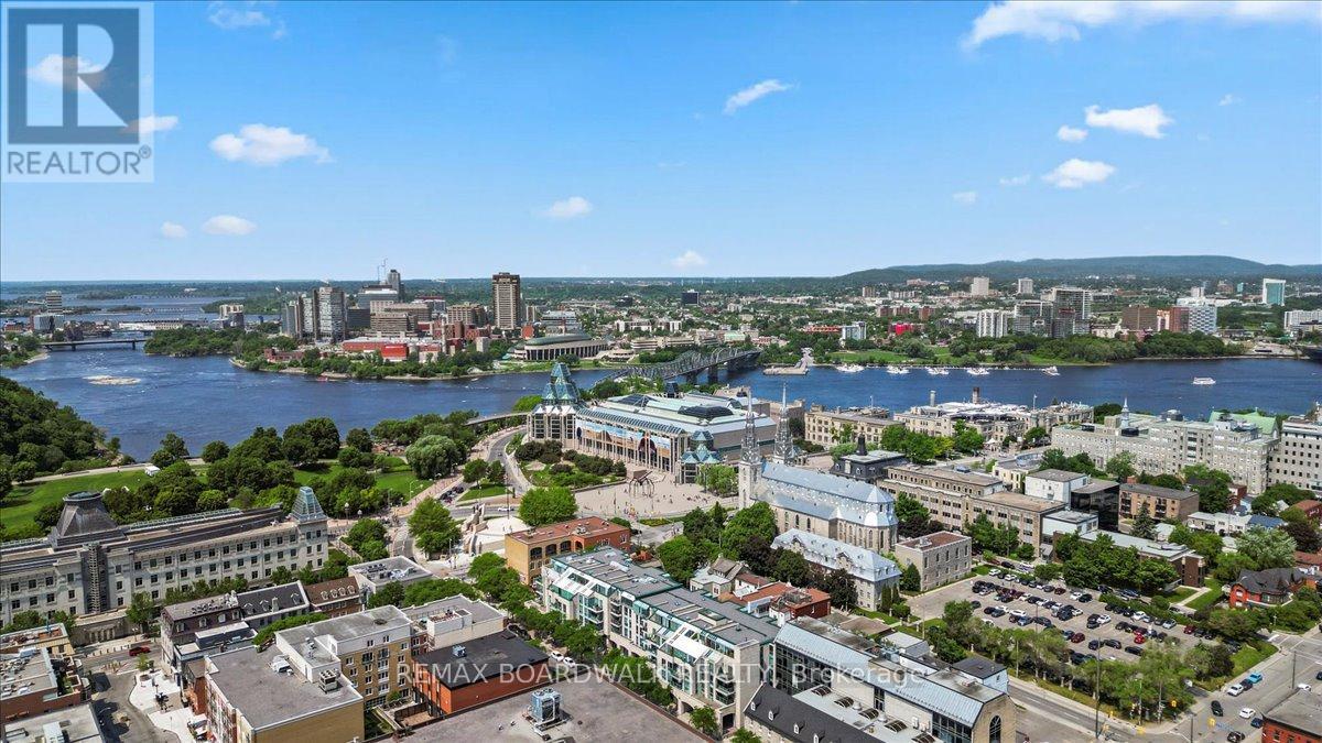 Community feels in Downtown Ottawa! This Four-Storey charming condo building is built to last in one of Ottawas most historic regions. Upon entering the unit, you are welcomed by a bright and simple layout. Leading into the highly functional U-shaped kitchen, you have a raised bar with dark granite durable counters, light subway backsplash, stainless steel appliances and crispy white cabinets surrounding the double-basin sink and cooking space. This stands center nearing the ideal in-unit laundry nearing the front oversized closet space. Flow into the open and sun-lit living and dining area with an electric fireplace angled off of the glass door, balcony access. The 4-piece bathroom has a focal piece vanity with a gooseneck faucet on a gold vessel sink and a luxury feel with heated flooring. King-sized possibilities in the main bedroom with deep double closets .This location has it all. Top-rated schools nearby, raving eateries, coffee shops & pubs, Rideau Centre Mall, Embassies and Museums, Major Hill Park, NAC and Byward Market. An inviting private lifestyle for all. Underground Parking + Storage + Central Air + In-Unit Laundry. (42152561)