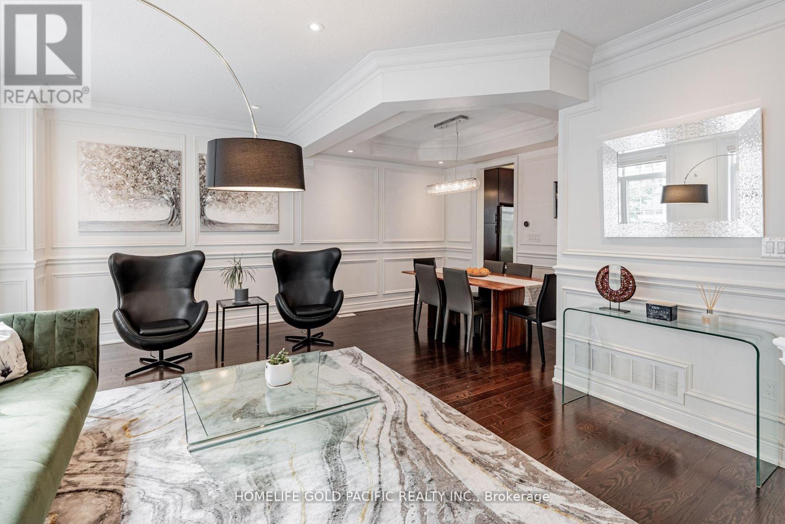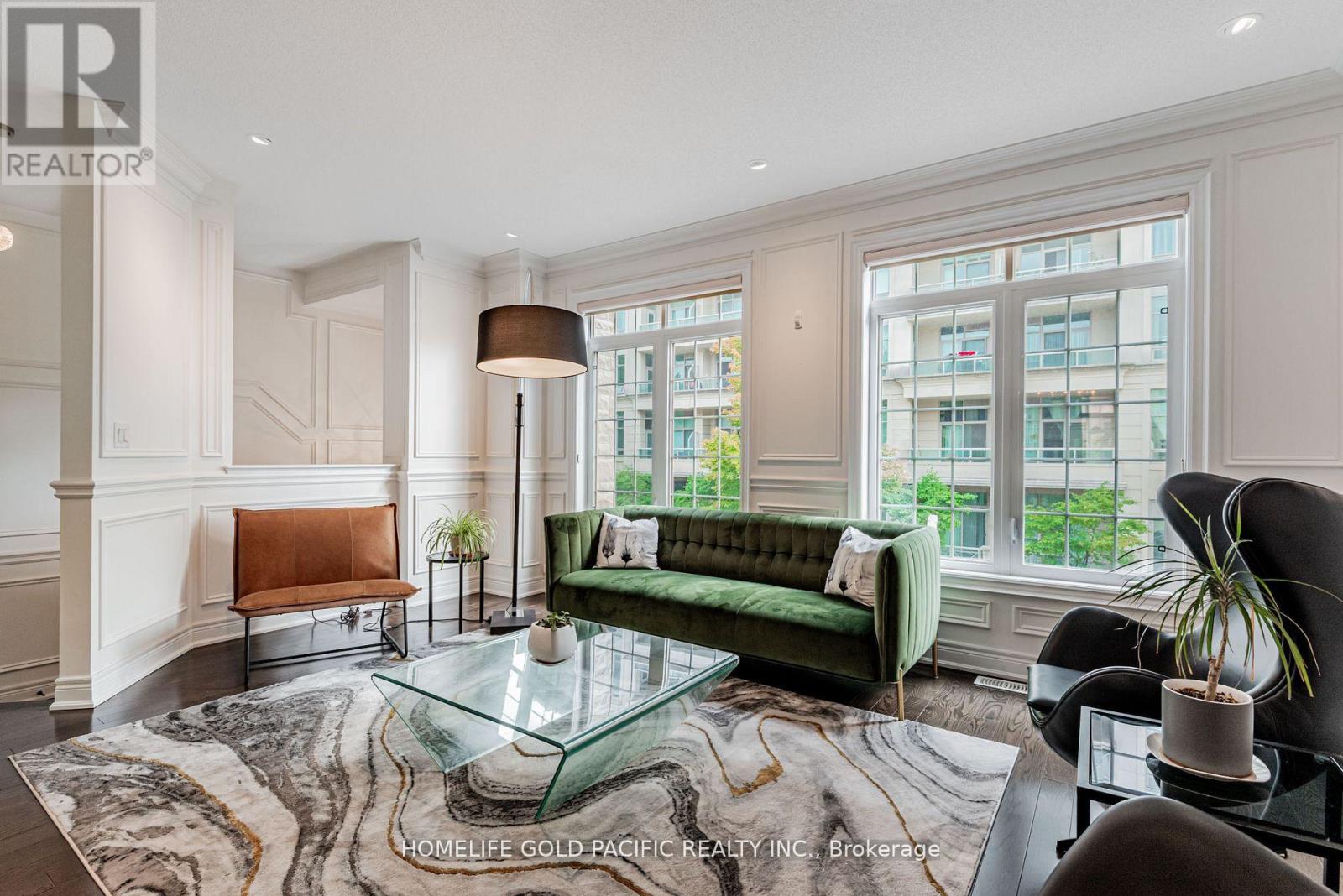 Experience luxury living in this 2,650 sq.ft. Aria townhouse, ideally located in prime North York near Leslie & Sheppard. Featuring a double garage that provides ample parking and storage, this spacious and bright home is nestled near a ravine and walking trail, offering breathtaking views and a peaceful natural setting. Elegantly designed with custom wall panels, wainscoting, and 9-ft ceilings, the home showcases exceptional craftsmanship throughout. The open-concept kitchen features a large breakfast bar, quartz countertops, and upgraded 24-inch porcelain tiles. Enjoy the spacious family room with a gas fireplace and walkout to a private deck, perfect for entertaining. Additional highlights include hardwood floors throughout, four upgraded marble bathrooms, and a large primary bedroom with a Juliette balcony, walk-in closet with built-in organizers, and a spa-like 5 piece ensuite. The basement-level recreation room has a direct walk out to the backyard, ideal for relaxation or gatherings. Residents enjoy exclusive access to Aria Condo amenities, including f fitness centre, indoor pool, party room, sauna, virtual golf range, and library. Conveniently located close to the TTC subway, GO Train, Bayview Village, Fairview Mall, North York General Hospital, and Highways 401/404/DVP, this home offers the perfect blend of modern luxury, comfort, and urban convenience. *All furniture is available for sale* (42152571)