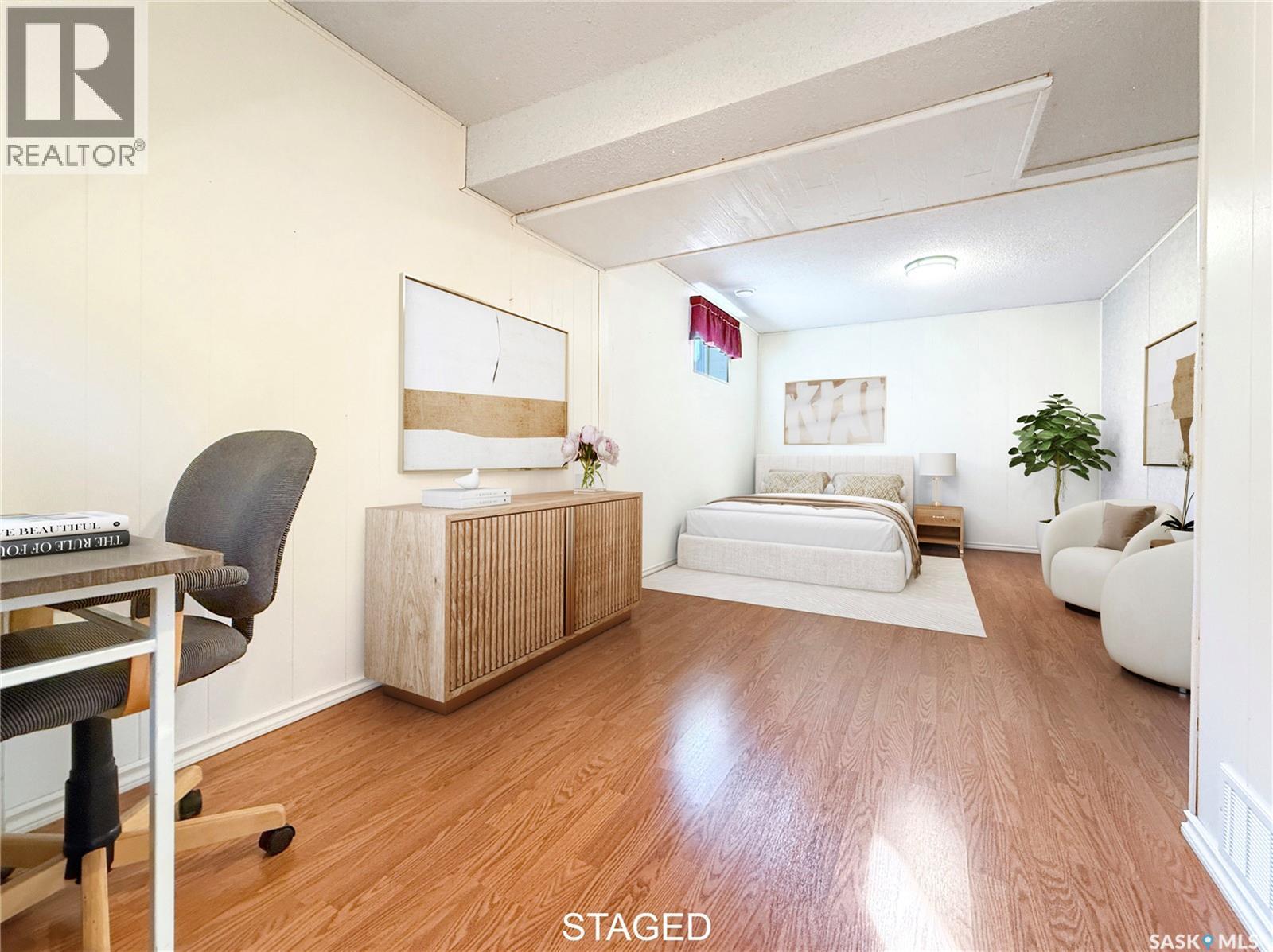 Welcome to Swift Current’s desirable Southwest—an established neighbourhood known for its parks, mature trees, indoor skating rinks, swimming pool, nearby grocery store and schools. Tucked into the corner of a quiet cul-de-sac, this spacious bungalow sits on an impressive lot with RV parking, garden space, and exceptional outdoor living, including deck and lower patio conveniently located off the dining area. An oversized, heated attached double garage adds everyday comfort and practicality. Inside, the updated kitchen is both functional and inviting, featuring ample cabinetry, generous counter space, updated backsplash, lighting, and fixtures, plus room for a dining table. Enjoy a clear view of the backyard and direct access to the main-floor laundry. The main level is completed by three well-sized bedrooms (or two bedrooms and a home office), including the primary suite with a 3-piece ensuite, along with a 4-piece main bathroom. Downstairs, a chair lift offers added accessibility and leads to a wide-open family room with plenty of space for entertaining. A large fourth bedroom and a renovated bathroom complete the lower level. Recent updates include refreshed flooring and improvements in the mechanical room, with an energy-efficient furnace, reverse osmosis system, water heater (2020), central air and water softener. Additional highlights include PVC windows on the main floor with vertical blinds, hardwood flooring, updated paint, a well-maintained deck, fully fenced yard, and multiple planter boxes. Meticulously cared for and move-in ready. Call today for more information or to book your personal viewing! As per the Seller’s direction, all offers will be presented on 02/19/2026 12:05AM. (29391393)