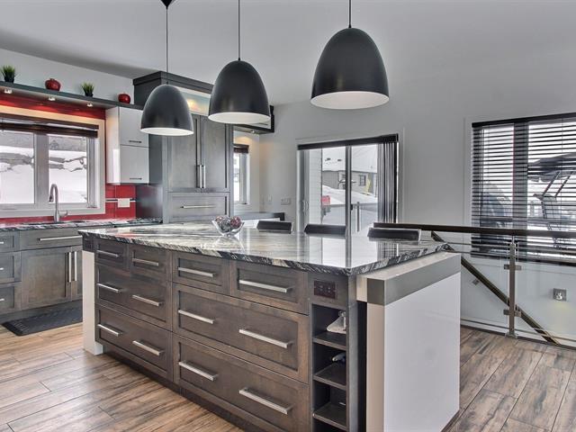 Superbe propriété offrant 3 chambres et 2 salles de bains, conçue avec des matériaux de qualité. Escalier et portes intérieures en bois, cuisine moderne avec îlot central, comptoir de granite et table intégrée, plancher chauffant dans toute la maison et quelques plafonds avec toiles tendues. Garage attaché chauffé, grande terrasse, cour arrière et abondant rangement dans la propriété. Foyer au propane au rez-de-chaussée. Une visite va vous séduire. (54622092)
