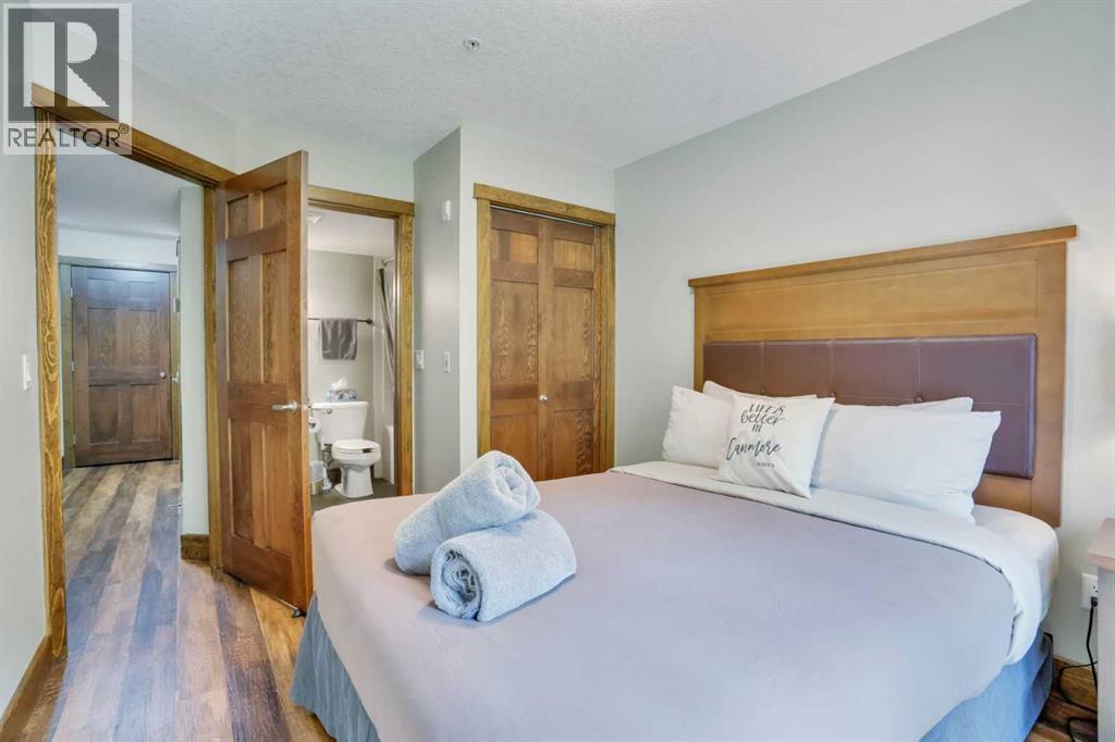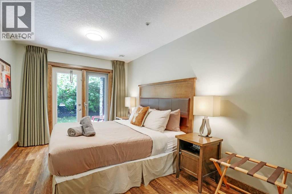 Enjoy the warm afternoon sun from one of 2 SW patio’s surrounded by attractive mountain architecture and beautiful views of the Mt. Rundle! This is one of the most peaceful and quiet locations you will find! This spacious 2 story townhouse has direct access to your vehicle for easy unloading of all of your gear & groceries! The entry level has a cozy living area, bright dining area with fully equipped kitchen and half bath. The doors and trim throughout are solid pine and the most of the flooring has been recently upgraded to match the warm mountain feel of the decor. Downstairs there are 2 large bedrooms each with their own ensuite and own direct outside access. The larger ensuite has been upgraded. The 18 foot long bedroom has the space to include an additional twin bunk which would expand the sleeping to 8-9 people (similar to most 3 bedrooms)! With this upgrade, Income should be strong and part way between a 2 bedroom and 3 bedroom! There is ample storage space both within the unit and in the external storage locker conveniently located beside the entrance door. Amenities include a hot tub & fitness room only a 10 second walk away. Fire Mountain Lodge has a healthy reserve fund and relatively low condo fee which includes air conditioning and in floor heating on the lower level. The location is ideal just a short walk away from the shops of Canmore and Spring Creek. List Price is $919,000+GST. GST is often deferred and not paid at the time of sale when the buyer is GST registered. All furniture, furnishings, kitchenware and unit items are included in the sale. This is a fantastic opportunity to own property & generate strong income on Airbnb! (31649499)