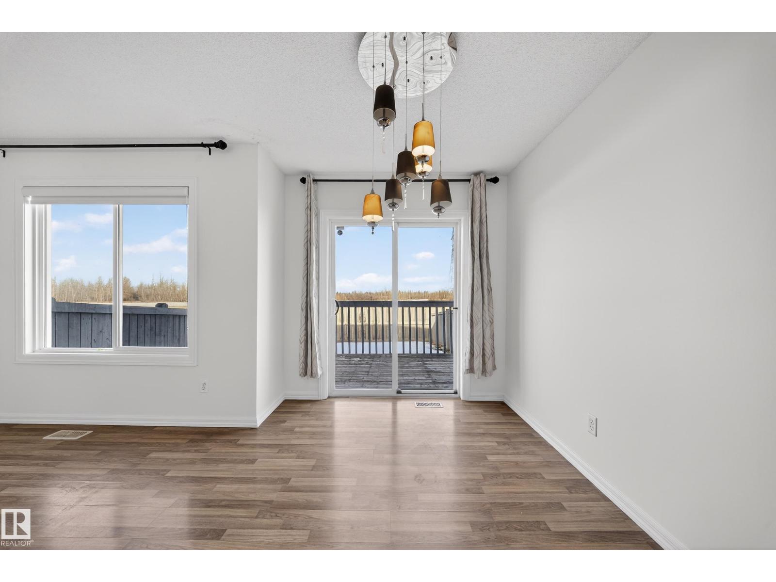 Welcome to Charlesworth! This charming half duplex offers comfort and convenience with FRESH PAINT throughout, a single attached garage, and a spacious backyard deck backing onto green space with easy access to the Henday. The bright main floor features a functional kitchen, dining area, cozy living room, and 2-pc bath, while upstairs offers three generous bedrooms, a 4-pc bath, and a primary suite with dual closets and a private 3-pc ensuite. The unfinished basement is ready for your personal touch or extra storage — a fantastic opportunity in a sought-after location! (33836737)