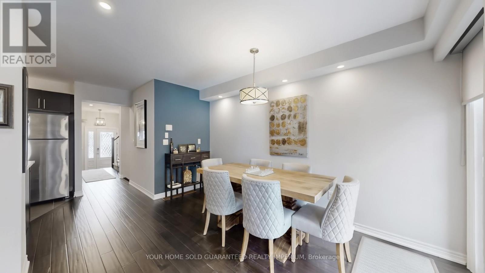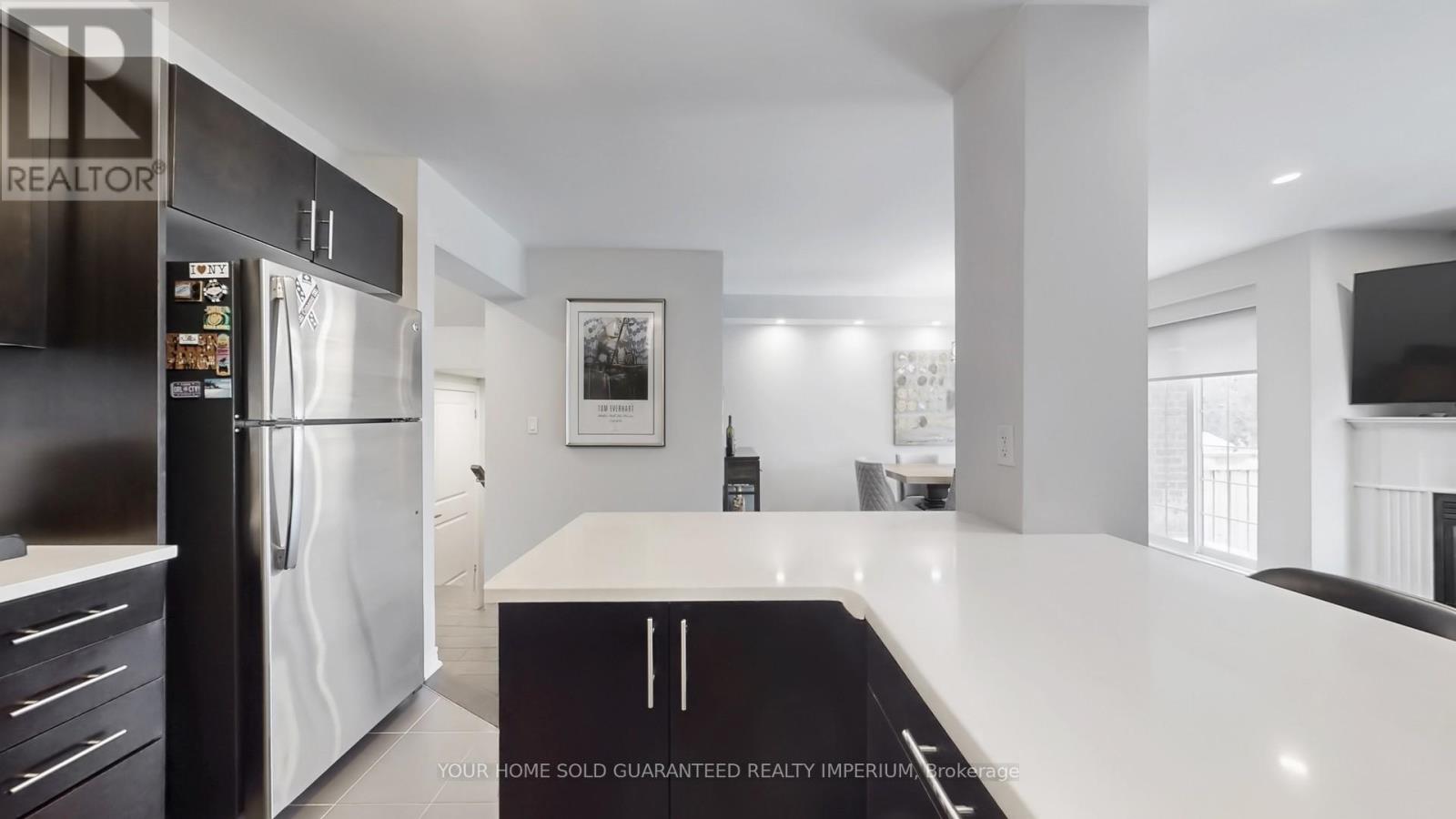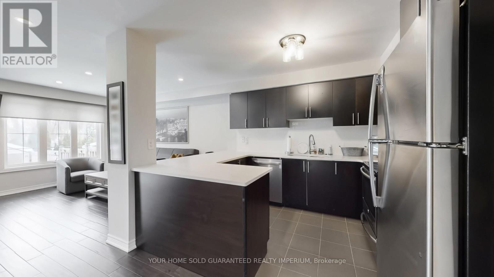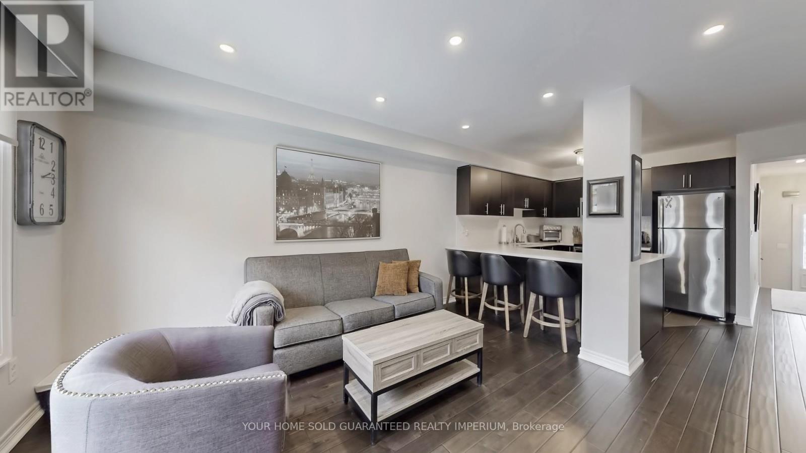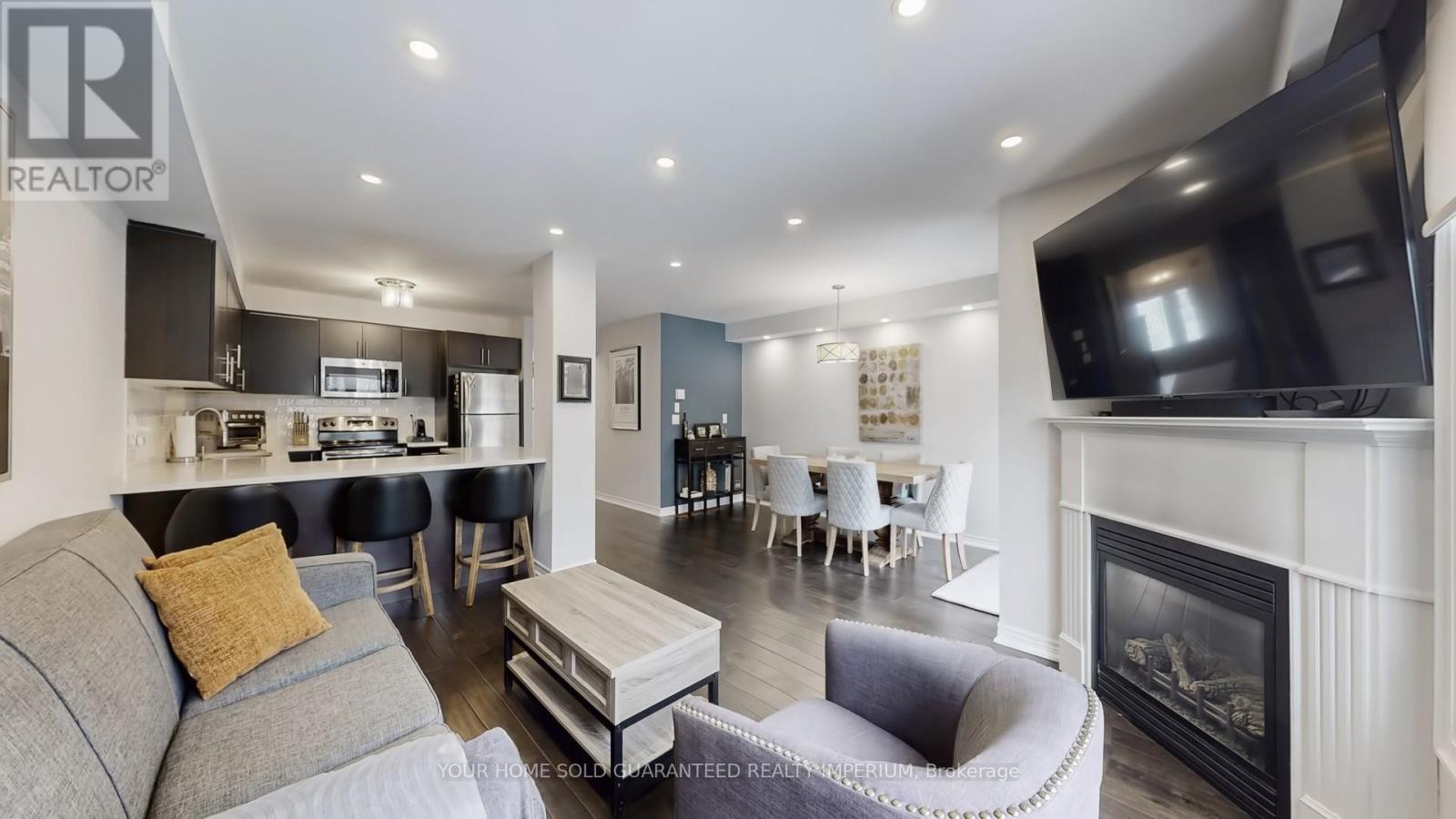 Step into the sought-after Brooklyn model freehold townhome located in the highly desirable Brooklin community of North Whitby, known for its family-friendly streets, newer homes, top schools, and easy access to Hwy 407 & 412.This stunning 3-bedroom home offers a fantastic open layout with extensive upgrades throughout. The main floor features smooth ceilings, gorgeous hand-scraped hardwood flooring, and a cozy gas fireplace, creating the perfect space for entertaining or relaxing. The upgraded chef's kitchen includes quartz countertops, undermount sink, crackled pearl backsplash, stainless steel appliances, and upgraded faucet, all thoughtfully designed for style and functionality. Upstairs you'll find spacious bedrooms, an elegant oak staircase with wrought iron pickets, upgraded trim, fresh professional paint, and premium custom window coverings including sunscreen roller shades on the main floor, vinyl plantation shutters in the front bedrooms, and custom Roman shades in the primary bedroom and ensuite.The finished garage is ideal for any car enthusiast with epoxy floors and metal checker-plate baseboards, plus extra driveway parking. The basement is 95% complete, needing only doors and paint - perfect for a future rec room, gym, or in-law space. Step outside to your private backyard retreat featuring a stone patio (2017), storage shed, mature trees, and no rear neighbours. The home has been professionally landscaped front and back with lovely stonework, offering incredible curb appeal and low-maintenance outdoor living. Located close to schools, parks, public transit, shopping, EMS & police services, this home shows true pride of ownership and is completely move-in ready. (42153451)