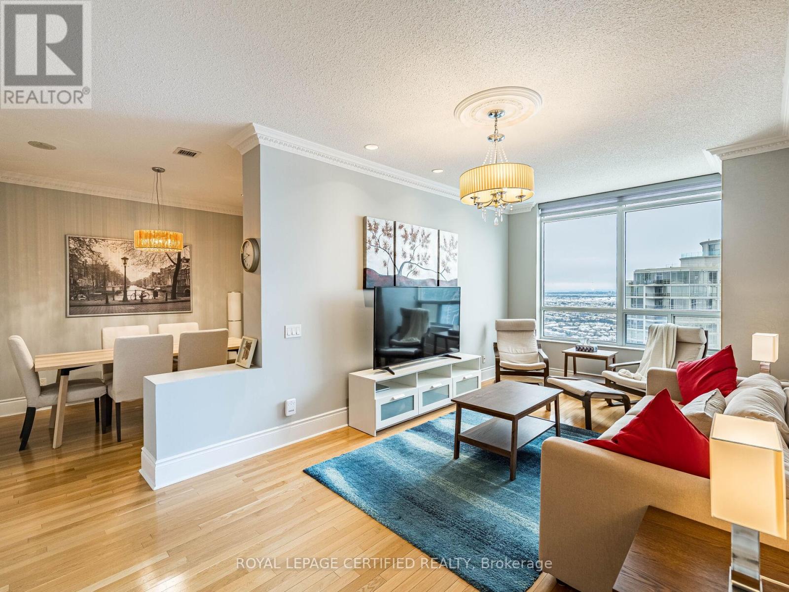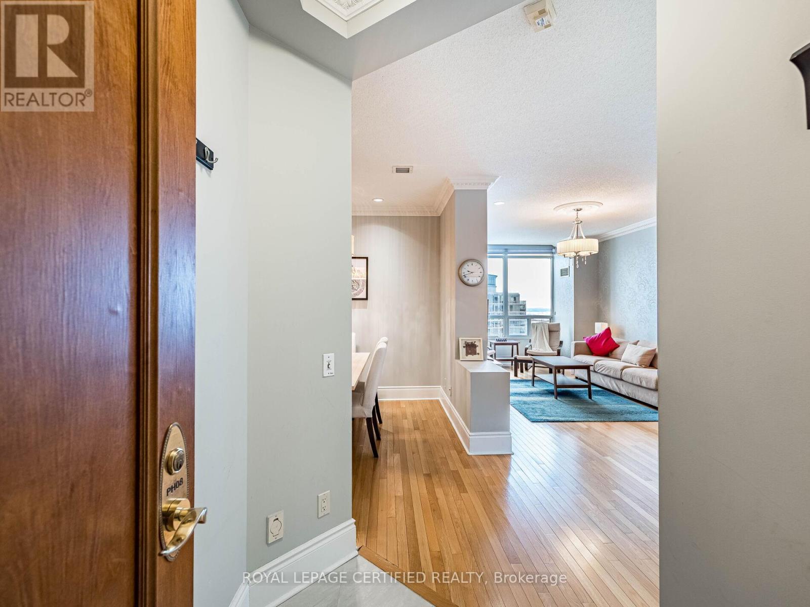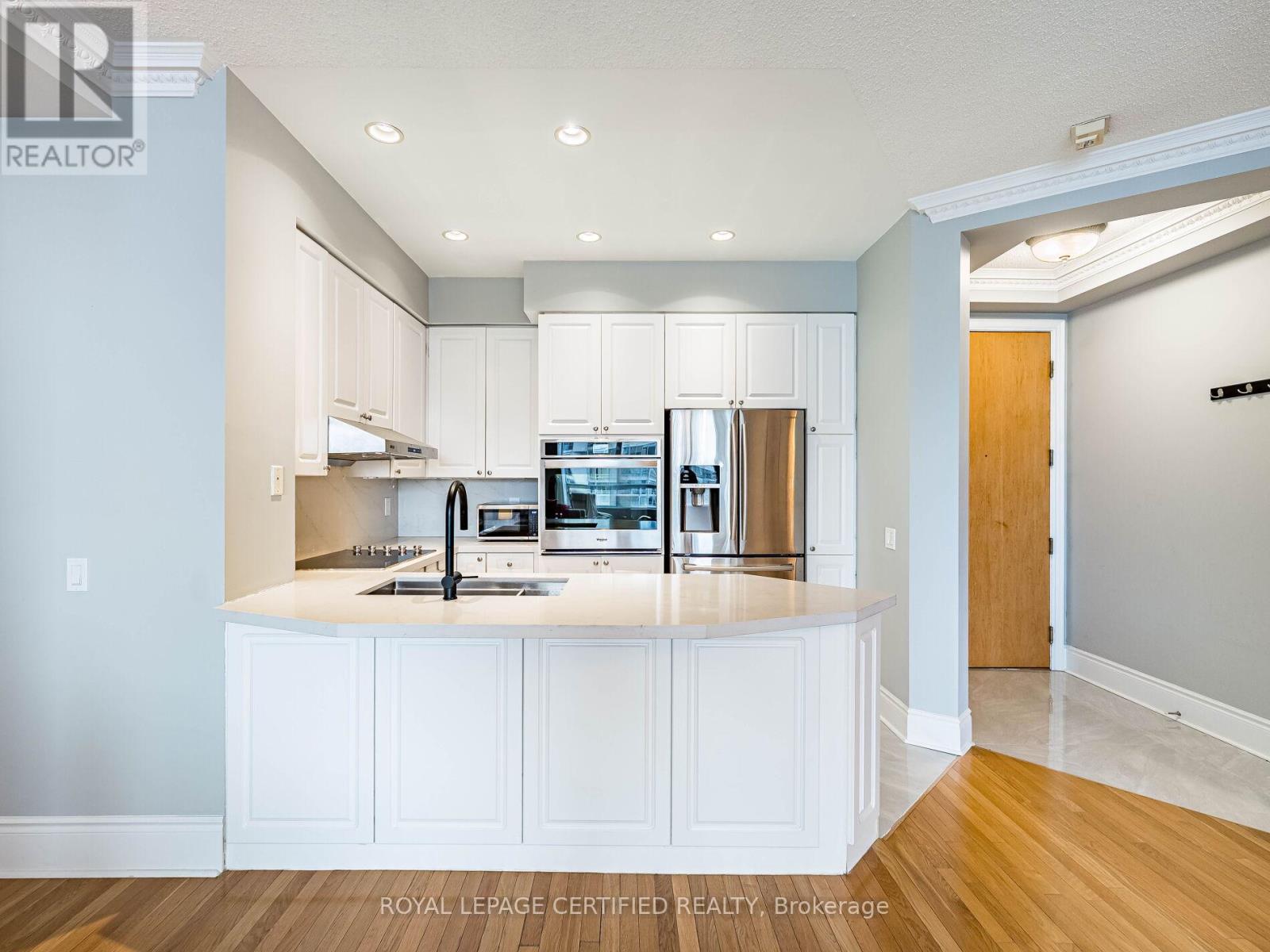 Gorgeous Penthouse Suite | 2 Bed + Den | Luxury Living in Mississauga with 2 parking spots. Experience upscale living in this stunning penthouse unit located in one of Mississauga's most luxurious and impeccably maintained condominium buildings. This spacious 2-bedroom + den suite offers exceptional upgrades and elegant finishes throughout.The den has been thoughtfully converted into a formal dining room, perfect for entertaining. Featuring 9-foot ceilings, hardwood flooring, upgraded baseboards, crown moldings, and pot lights, this home exudes sophistication and comfort. The modern kitchen boasts stainless steel appliances, an upgraded countertop, electric cooktop, built-in wall oven, dishwasher and a French door fridge. Both bathrooms have been beautifully upgraded with premium tiles and sleek glass shower panels.The primary bedroom includes a walk-in closet, and the private balcony comes equipped with a convenient gas BBQ connection. Extras & Amenities: Stainless Steel French Door Fridge Electric Cooktop & Built-In Wall Oven, Dishwasher, Walk-In Closet in Primary Bedroom, Gas BBQ Hookup on Balcony, 24-Hour Concierge, Indoor Pool, Fully Equipped Gym. & much more. This exceptional penthouse offers luxury, style and convenience - a rare opportunity you don't want to miss. BONUS Sold furnished with existing Furniture. (42153813)