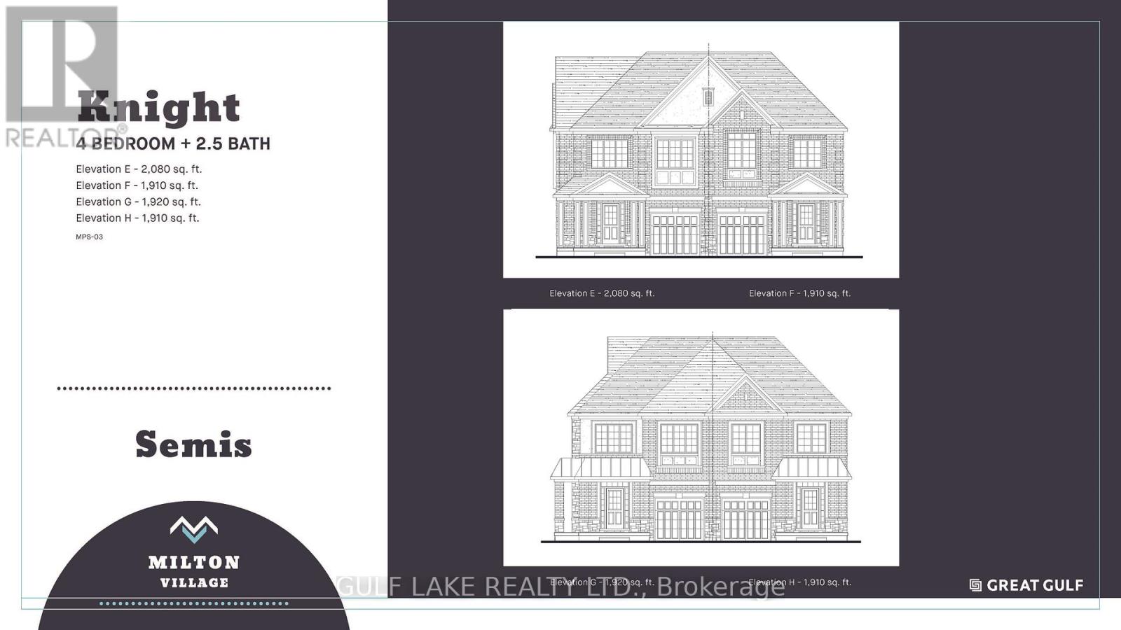 Welcome to this stunning preconstruction luxury semi-detached home by award-winning Great Gulf Homes - buy direct from the builder. Presenting The Knight model offering approximately 1,920 sq. ft. of beautifully designed living space with premium finishes throughout.Featuring 9' ceilings on the main and second floor, this home offers a bright, open-concept layout ideal for modern living. The chef-inspired kitchen boasts a large centre island with breakfast bar, quartz countertops, stylish cabinetry, and 12" x 24" tile flooring. Elegant 3" hardwood flooring throughout and oak stairs with metal pickets add warmth and sophistication.The spacious primary suite features a luxurious ensuite with double sinks and quartz counters. Enjoy the convenience of a second-floor laundry room. A side door entrance with direct basement access offers added flexibility. Finished basement available at an additional cost.Built for efficiency and peace of mind as an Energy Star certified home, including the Greater Home Guarantee (with H+ME Technology) and full Tarion Warranty coverage.Bonus $15,000 Design Studio credit included - personalize your finishes and make it your own.Ideally located near new schools, Milton GO Station, shops, dining, and easy access to highways 401 and 407.All offers on builder forms. Contact the Milton Village Sales Office for pricing, availability, and full details. (42154309)