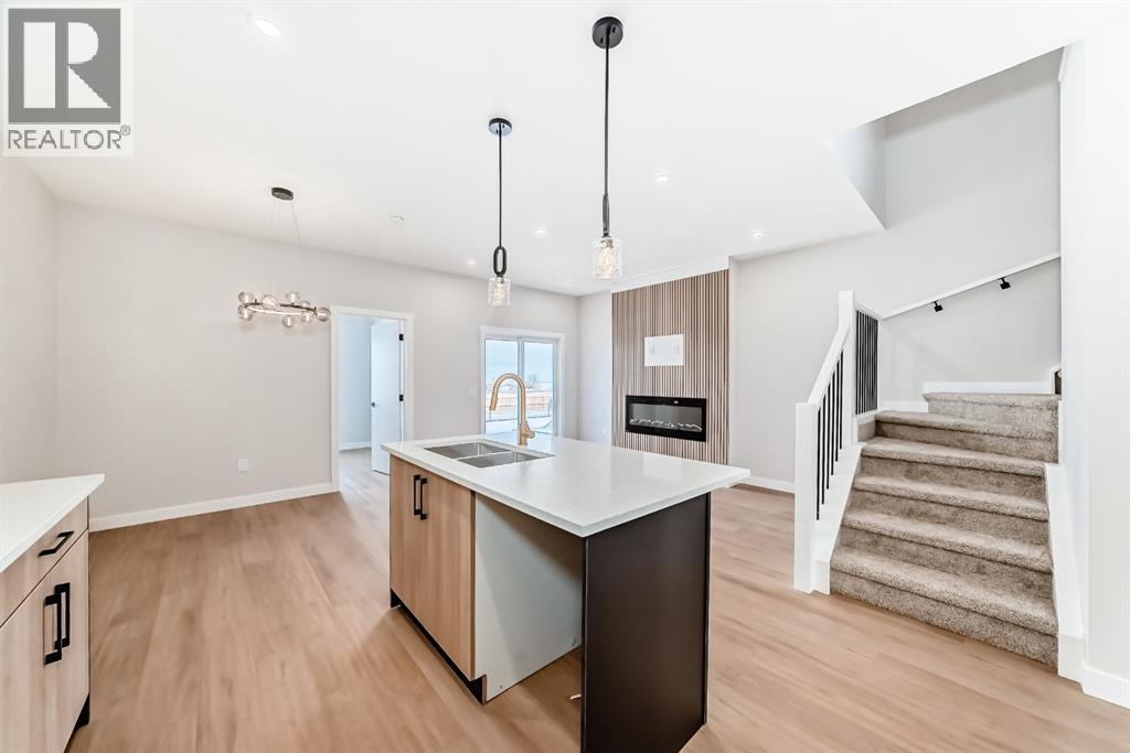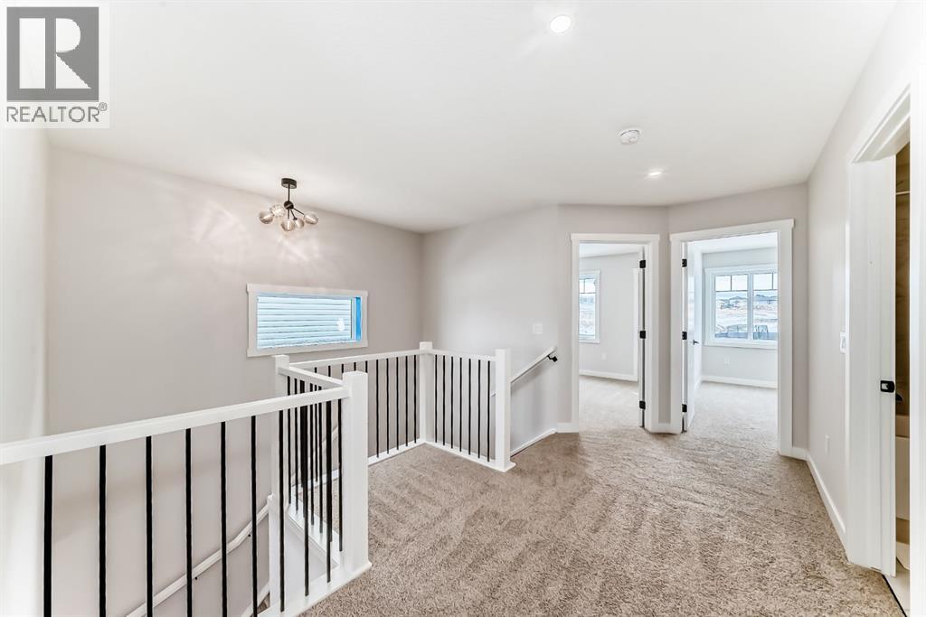 Welcome to this spacious and thoughtfully designed duplex in the charming town of Crossfield, Alberta, offering over 1,700 square feet of comfortable living space—perfect for growing families, professionals, or those seeking flexible work-from-home options.The main floor features a bright open-concept layout that seamlessly connects the living room, kitchen, and dining area, creating an ideal space for everyday living and entertaining. A separate family room provides additional space to relax or gather, while a main-floor bedroom—easily used as a home office or guest room—adds excellent versatility. A full bathroom completes the main level.Upstairs, you’ll find a well-appointed primary bedroom retreat complete with a walk-in closet and private ensuite bathroom. The upper level also includes two additional bedrooms, another full bathroom, a convenient laundry area, and a bonus room—perfect for a playroom, media space, or second living area.Located in the welcoming community of Crossfield, this duplex offers small-town charm with easy access to amenities and commuter routes. A fantastic opportunity to enjoy space, comfort, and functionality. (31650298)