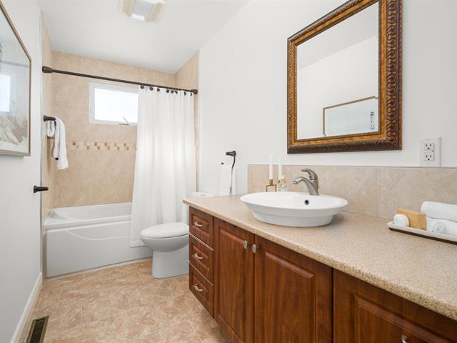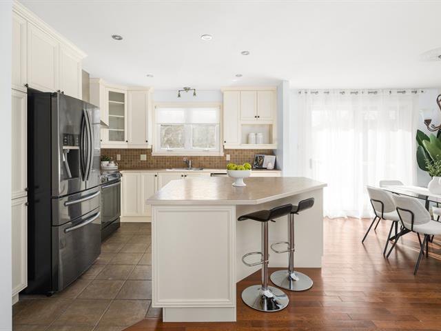 Well-maintained 3+1 bedroom bungalow located on a quiet crescent in a sought-after family-friendly area of Brossard. The bright main floor features three bedrooms, hardwood flooring, an updated kitchen with island (2009), and a gas fireplace. The basement offers a versatile living space with an additional bedroom, powder room with laundry, and direct access to the garage. Enjoy a landscaped yard with a semi-inground pool and heat pump. Ideally located near schools, daycare services, parks, Quartier DIX30, Taschereau Boulevard, and the Panama transit hub with REM access. (41633502)