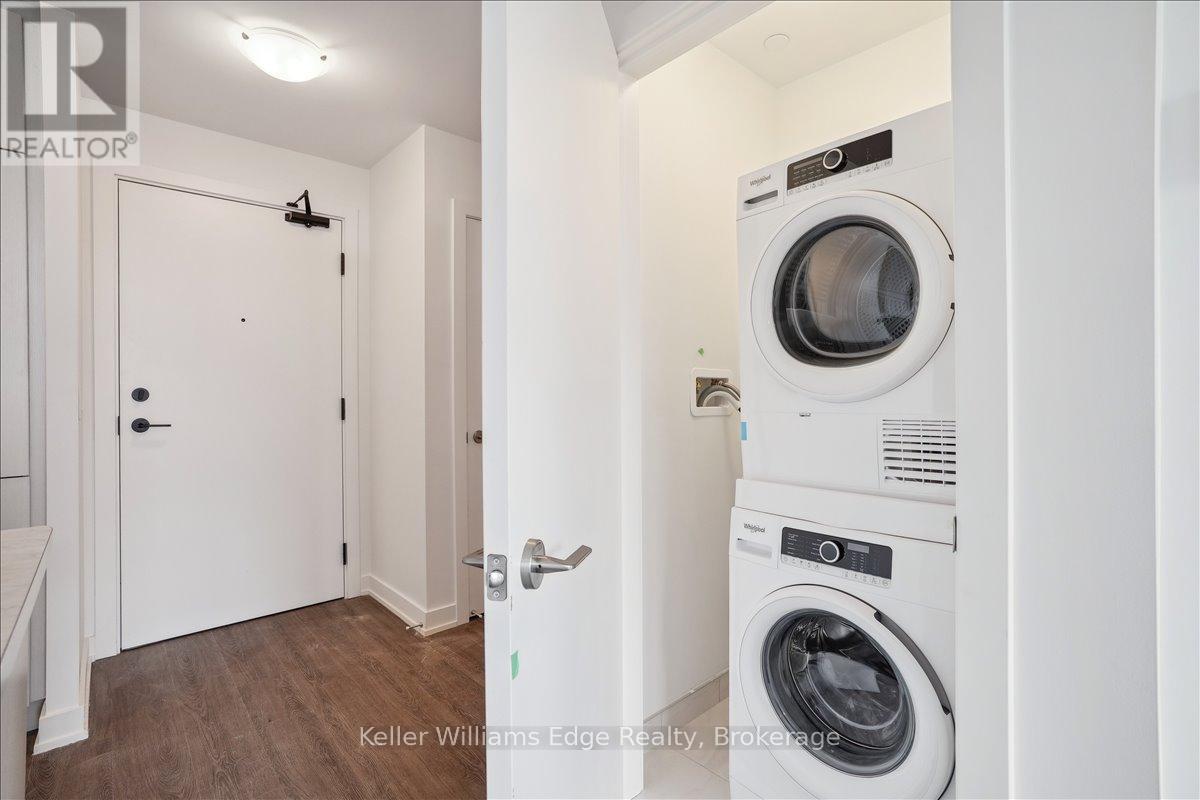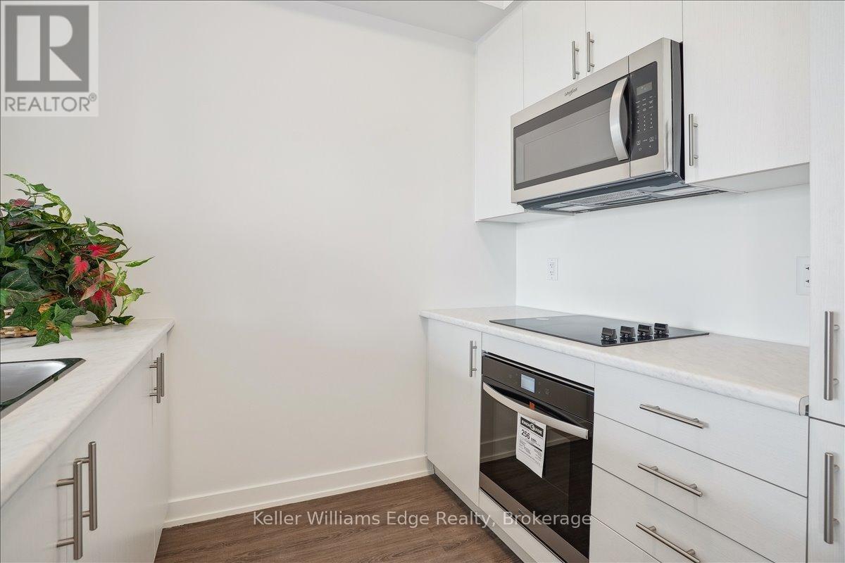 Welcome to this beautiful 1-bed, 1-bath, condo at Costal Modern (COMO) Living by the Lake. This condo is perfect for commuters, being just minutes to the QEW, Confederation GO & the proposed Grimsby GOStation. Picture yourself sipping your morning coffee, taking in views of the lake and the escarpment, on your private balcony. Your new home features a bright open concept living/dining room & kitchen, 9 ft ceilings, luxury vinyl plank flooring throughout, in-suite laundry w/stackable washer & dryer, 1 parking space and 1 locker. The sleek kitchen boasts a breakfast bar, modern/upgraded cabinet panel fridge & dishwasher, built in oven & cook top range, and a built-in microwave. The bedroom features a spacious walk-in closet and large window, bathing the space in natural light. (42154638)