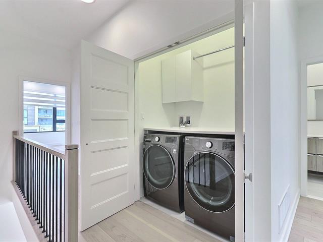 This modern townhouse is located in the MYX complex, at the north end of Nuns' Island, within walking distance of local shops, bike paths, the REM station, and the waterfront. The house features 4 bedrooms, 3 bathrooms, 1 powder room, a large terrace, and 2 private indoor parking spaces. Enjoy all the condo facilities while living in a house: gym, pools, 24h doorman, guest suites and much more. (40727658)
