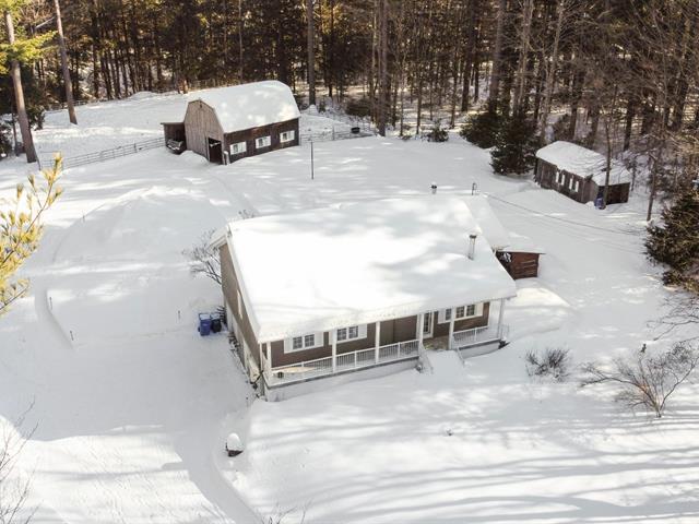 THE DREAM: Stunning farmette in Rigaud mountain on over 92,000sqft, featuring a barn and pasture, nestled in a quiet and very private neighborhood with no rear neighbors. Ideally located near the highways, this property offers a true haven of peace. The 3-bedroom (2+1), 2-bathroom home combines comfort and functionality. The spacious kitchen opens to the living and dining areas, where an efficient wood stove creates a warm and inviting atmosphere. The master bedroom features a large ensuite bathroom, while the basement includes an additional bedroom, storage space, and a huge garage. (57901702)