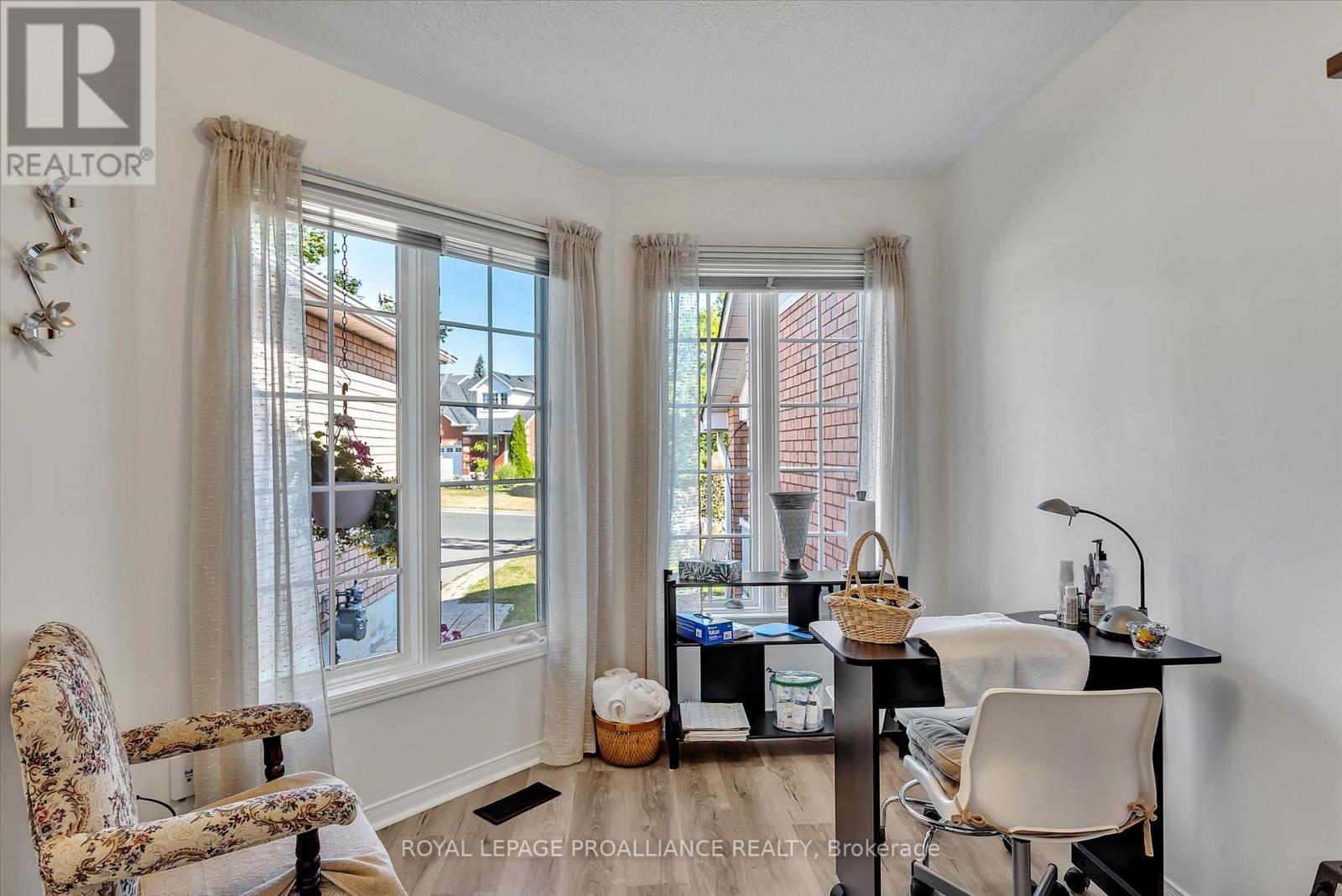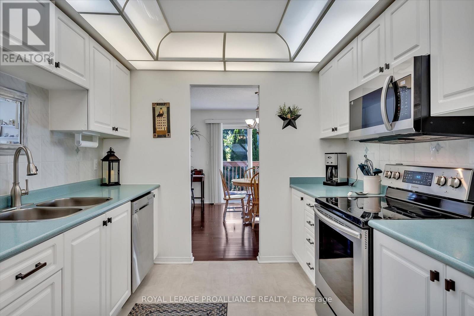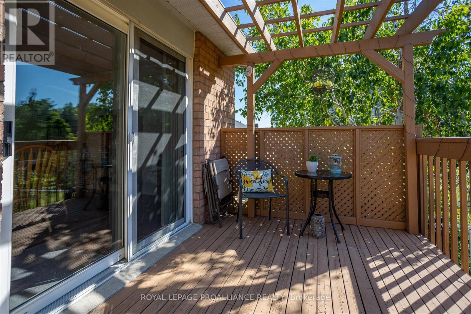 This fabulous location townhouse, backs onto a ravine/park/greenspace and no neighbors' behind. Lovely sought after north/west end area of Peterborough. This 2 bedroom home has attached garage and newly finished exterior front sitting area for morning coffee. Enter large open foyer, new flooring in both bedrooms, spacious Primary bedroom with walk-in closet and bright 2nd bedroom, both are next to the 4pc bath. Kitchen offers mega cabinets with many drawers and plenty of counter space, new microwave/exhaust fan and sink faucets. Large laundry closet off hallway for your main floor convenience. Amazing year round views from open concept living and dining area with patio doors to walk out to pergola, sit and enjoy the privacy on your rear deck. Basement has rough-in for 2nd bath and high ceilings to finish to your liking. All 5 appliances are included. (42155249)