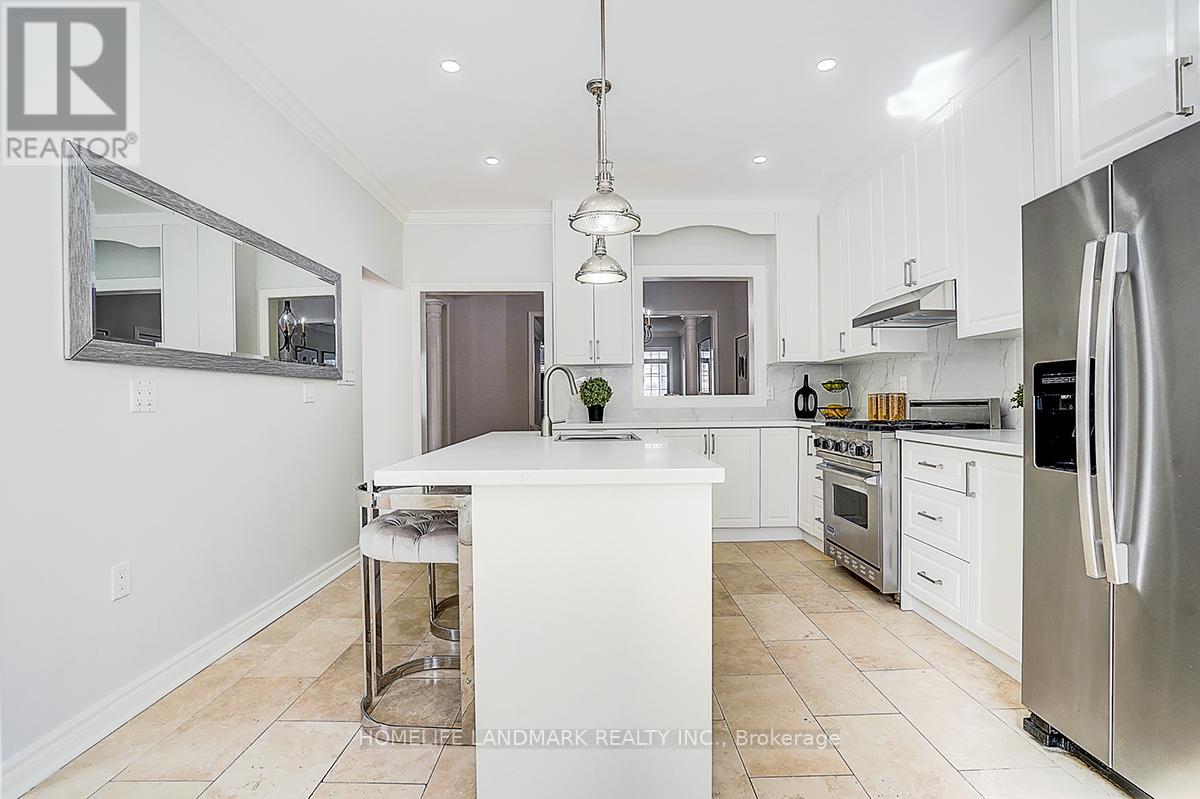 Fully renovated double car garage detached house in the heart of Berczy Village. 9 ft ceiling on first floor. Soaring cathedral ceilings - front entry & dining room. Open concept newly renovated kitchen with central island (2026). Breakfast area W/O to concrete patio. South-facing spacious family room with fireplace and display cabinet. Circular staircase. Main floor sunken laundry w/sink and door to garage. Bright south-facing primary room has walk-in closet & huge ensuite w/double sink and glass door shower. Second floor has a sitting area that can be an office. Roof (2024). Top-rated schools area. Steps to Castlemore Public School and Pierre Elliott Trudeau High School. Walk to parks, trails, and the Angus Glen Community Centre. Enjoy a round of golf at Angus Glen Golf Club. (42155320)
