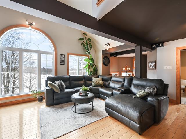 WOW! Propriété unique nichée en hauteur offrant une vue panoramique exceptionnelle. Sise sur un magnifique terrain paysager de plus de 39 000 P2, agrémenté d'arbres matures, elle propose une spacieuse terrasse de 24x29 pi ainsi qu'un garage double. Construite en 2010 avec des matériaux de qualité supérieure, elle se distingue par ses superbes boiseries et ses planchers chauffants au rez-de-chaussée et au sous-sol. Elle comprend trois chambres à coucher avec possibilité d'en aménager facilement une quatrième, ainsi que deux salles de bain complètes. À voir absolument! Rare sur le marché. Une visite s'impose! (40476001)