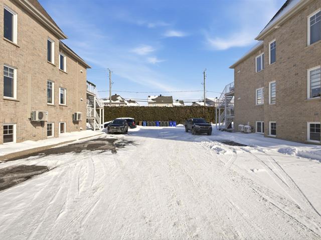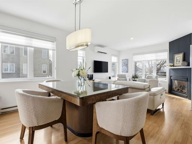 STUNNING ground-floor corner unit condo offering two (2) bedrooms and exceptional natural light thanks to abundant windows on three sides. Open-concept and inviting living area. Renovated kitchen (2024) and wall-mounted heat pump installed in 2024 for optimal comfort year-round. Gas fireplace in the living room creating a warm and cozy atmosphere, plus a practical and functional separate laundry room. Two (2) parking spaces and a storage unit adjacent to the rear balcony complete the package. Located in a sought-after, peaceful area close to services, schools, and major roadways. QUICK OCCUPANCY AVAILABLE! (56037473)