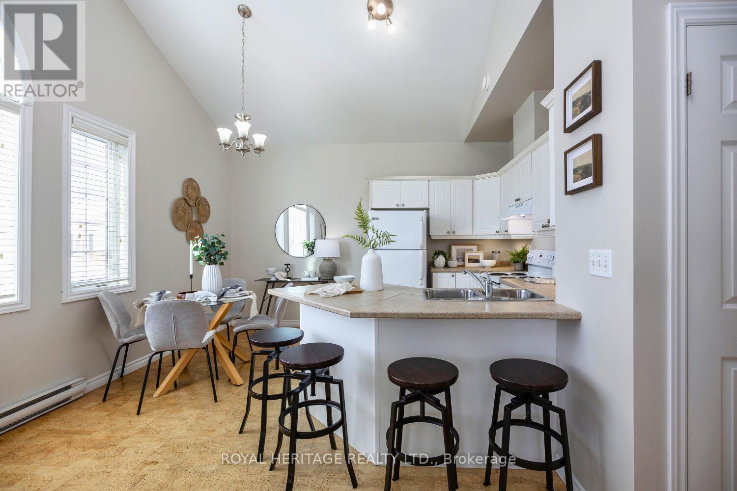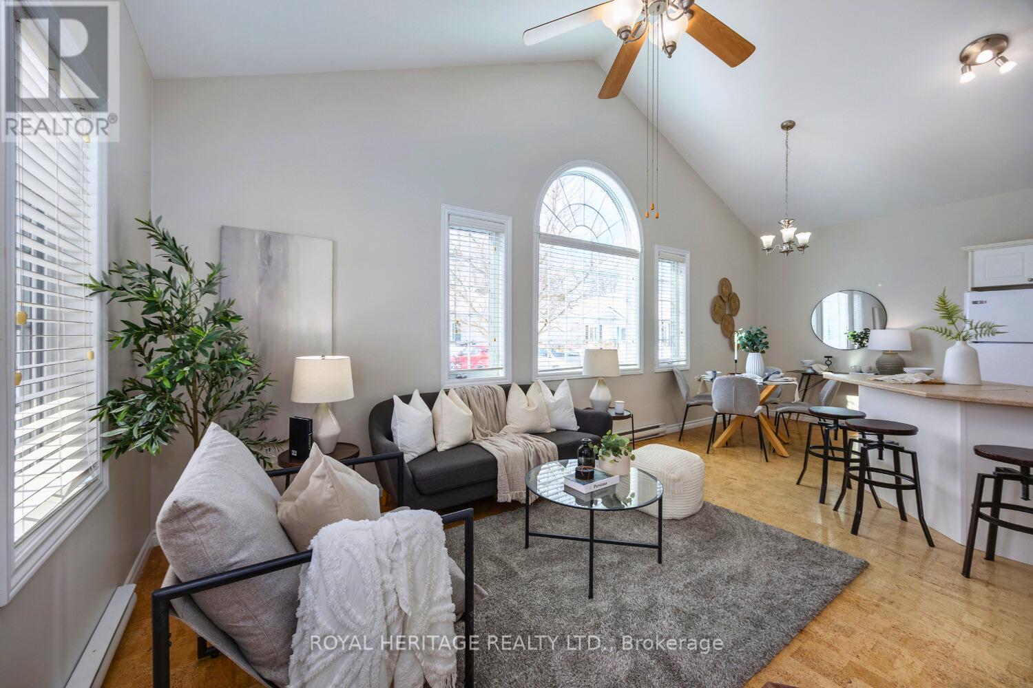 Welcome To Easy Living In Beautiful Cobourg, Ontario. This Freshly Painted Two-Bedroom, One-Bathroom Condominium Bungalow Offers Bright Open Concept Living With Vaulted Ceilings, Creating An Airy And Spacious Feel Throughout The Living Room And Kitchen Area. Featuring 725 Square Feet Of Well-Designed Living Space, This Move In Ready Bungalow Condo Is Ideal For First Time Home Buyers, Downsizers, Or Those Seeking Low Maintenance Living In Northumberland County. The Functional Kitchen Flows Seamlessly Into The Inviting Living Area, Perfect For Everyday Comfort And Entertaining. Two Well Proportioned Bedrooms Provide Flexible Space For Guests, A Home Office, Or Peaceful Retreats. Enjoy The Convenience Of In Suite Laundry With A Full-Size Stackable Washer And Dryer. Outside Surface Parking Is Located Just Steps From The Unit For Easy Access. Located In A Quiet Condominium Community Close To Shopping, Restaurants, Parks, And Cobourg Waterfront Amenities, This Affordable Condo Offers Exceptional Value In Today's Real Estate Market. Perfect For Those Searching For A Bungalow Condo In Cobourg, A Starter Home, Or A Downsizing Opportunity With One Level Living. Move In Ready, Low Maintenance, And Ideally Located, This Charming Condominium Bungalow Is A Wonderful Place To Call Home. (42155538)