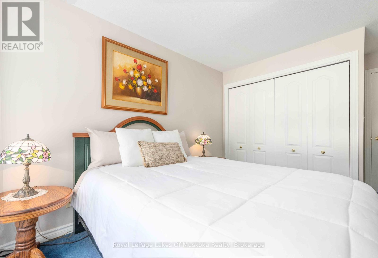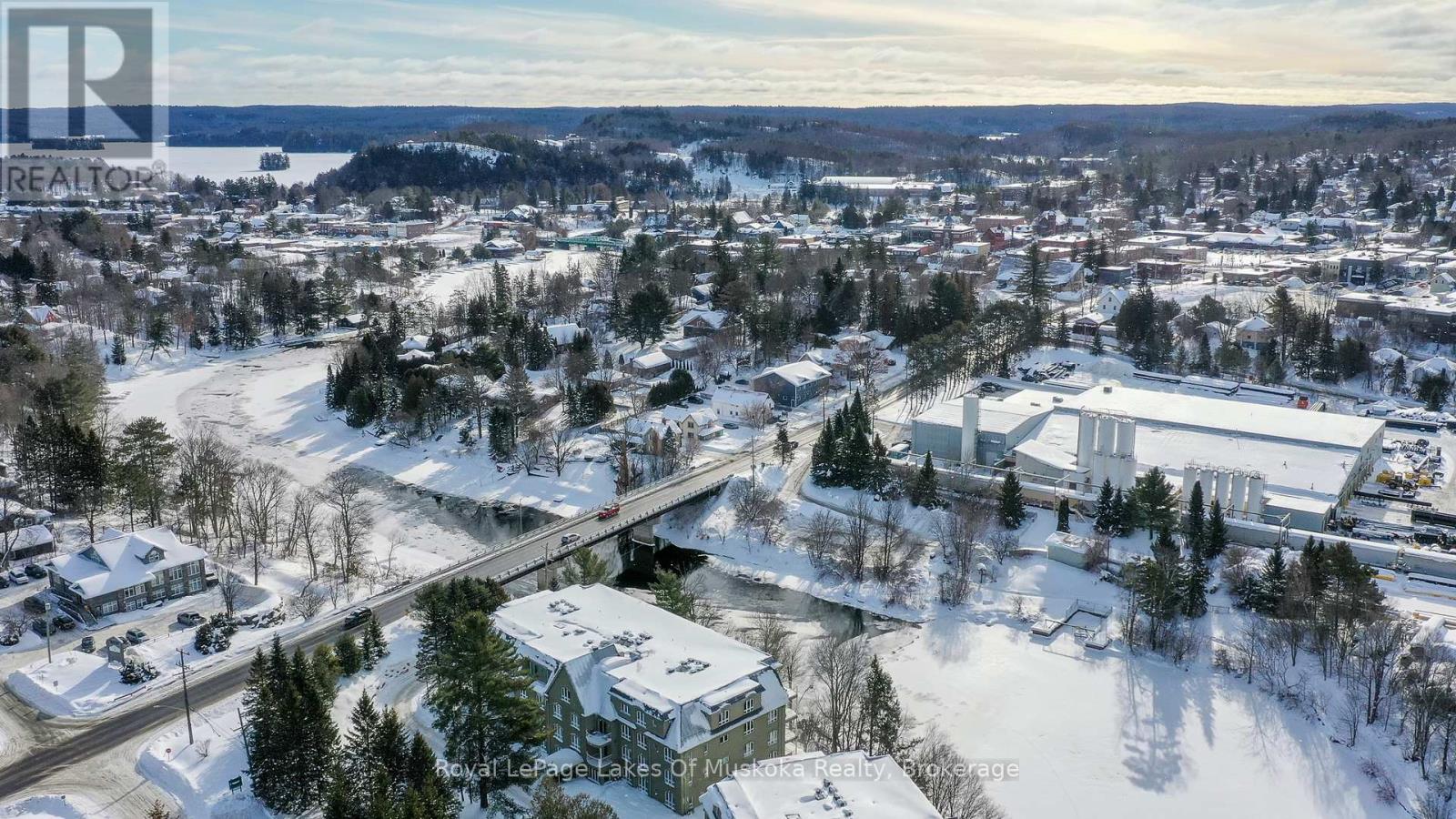Muskoka Riverfront condo featuring 1 bedroom and a spacious den with an oversized closet and patio access. This condo provides a sunlit, spacious open floor plan with large windows and elevated views facing into trees from the primary bedroom and living space. The open air balcony is a great spot to enjoy your morning coffee, meals or a relaxing glass of wine. Algonquin landing is set directly on the Muskoka River allowing residents to utilize the shared dock to relax and revel in the riverfront vistas and watch the boats meandering slowly by on Huntsville's 40 mile boating system. Professionally landscaped gardens on treed grounds all a short stroll from downtown Huntsville and all the amenities you crave. The Algonquin Landing development has only 2 buildings and is the only waterfront condo building featuring underground parking in Huntsville. Very short walk to access Hunters Bay trail that provides a fantastic place to walk with scenic views and sandy shorelines. The building has a lovely sense of community and has a warm and friendly atmosphere. You can bring your furry friends with you, up to two dogs or cats with a weight restriction of each pet of 25lbs. Comfortable luxurious waterfront living without the worry and work of exterior maintenance. The building has been kept in fantastic condition with new shingles in 2021, underground parking garage floor redone, and exterior freshening including updated balcony. Historic downtown Huntsville, a sought after area to live featuring a live theatre, unique downtown, fabulous restaurants, art galleries, golf courses, alpine/Nordic skiing, walking trails, sport courts, and state of the art hospital. (42155619)