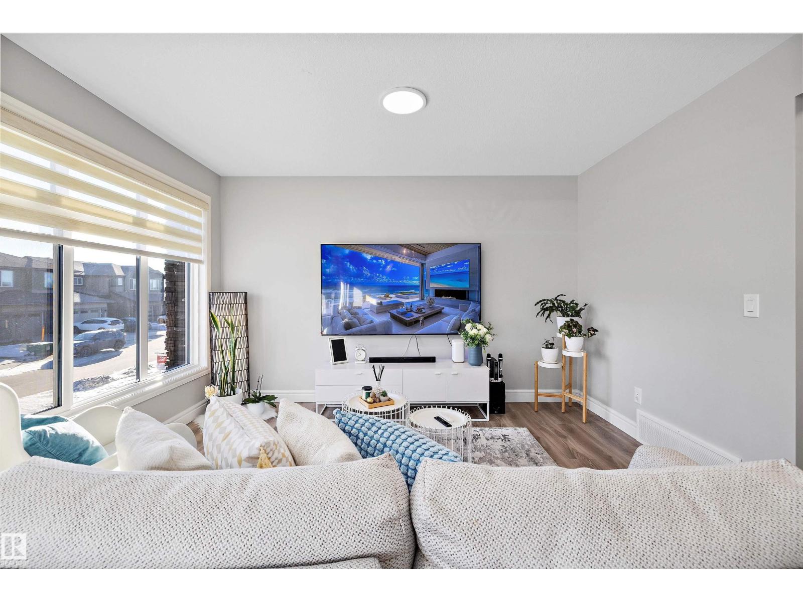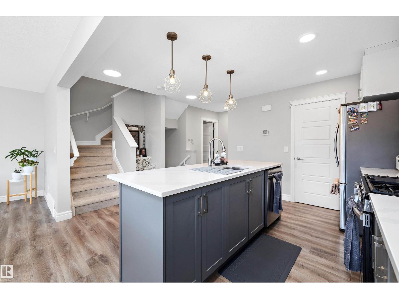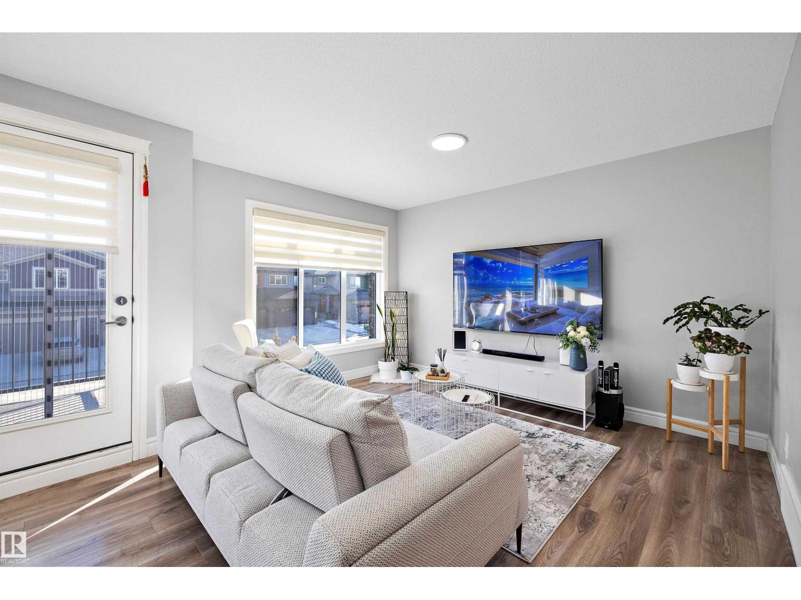 No condo fee TOWNHOME in the sought-after neighbourhood of Keswick! This nearly new 3-bedroom + den townhouse delivers a bright, practical layout in a prime southwest Edmonton location. With an east-facing front, the home welcomes beautiful morning light through large windows and is finished with brand-new zebra blinds throughout. The open-concept main level is designed for both everyday comfort and entertaining, featuring a spacious kitchen with quartz countertops, modern cabinetry, a walk-in pantry, convenient laundry area, and a powder room. On the entry level, you’ll find an oversized single attached garage, ample storage, and a versatile den — perfect for a home office, gym, or creative space. Upstairs includes two well-sized secondary bedrooms, a full 4-piece bathroom, and a bright primary retreat complete with a walk-in closet and private ensuite. Ideally situated just minutes from Currents of Windermere and close to walking trails, parks, schools, golf and major roads to get around the city. (33838111)