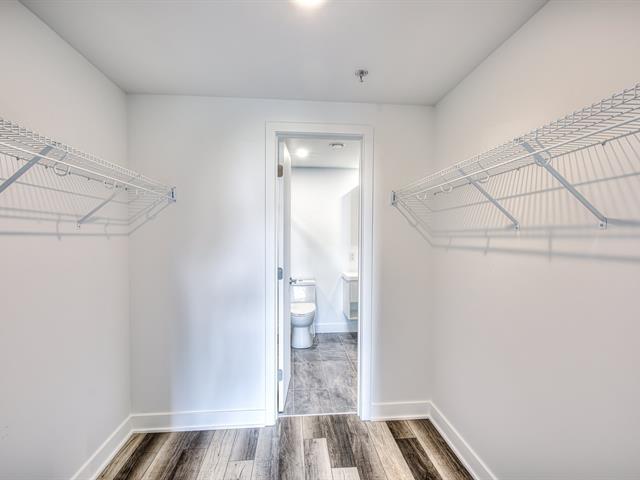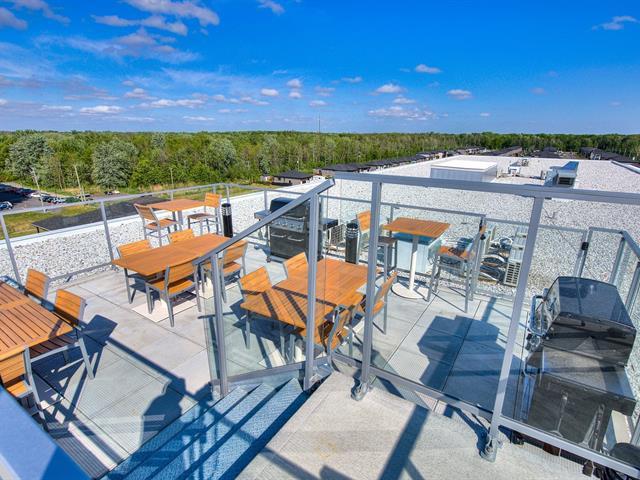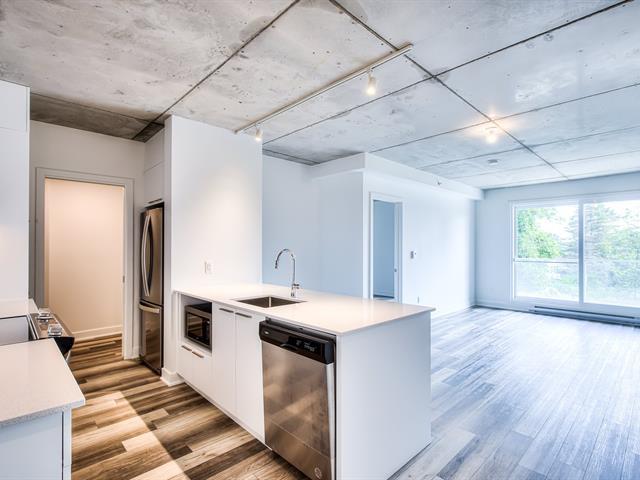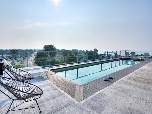 Beautiful, corner unit 2 bedrooms + 1 bathroom on the 3rd floor with a large balcony. Access to Lac St-François's turquoise waterfront. Enjoy this little oasis, perfect for outdoor living-along with a master bedroom and adjoining walk-in closet and modern bathroom, an open concept living area, an island kitchen with a separate pantry, quartz countertops, new stainless steel appliances, and most common amenities such as common work space, gym, rooftop terrace with pool and BBQ with exceptional views. 1 indoor parking and 1 locker also included. A must see! (49018829)