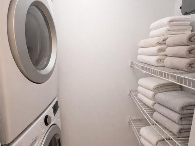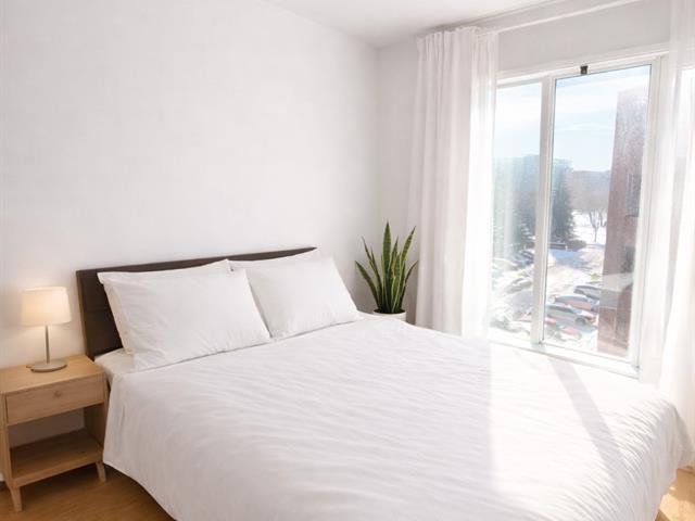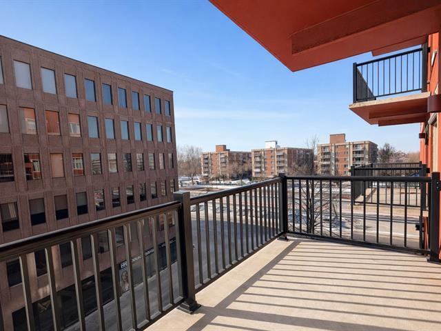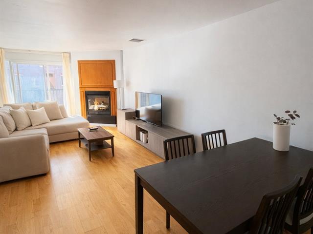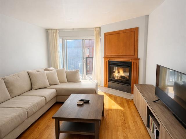 The unit features a closed bedroom as well as a versatile office space that can easily serve as a guest room or home office, ideal for remote work. The open-concept living area is highlighted by a gas fireplace, adding warmth and character throughout. Functional kitchen open to the living and dining areas, creating a seamless and inviting flow. Full bathroom with integrated washer-dryer space. Private balcony, indoor parking with adjacent storage. Well-managed condominium ideally located near public transportation, Highway 15, parks, schools, and essential services. (41822693)