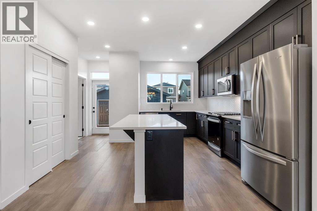 Brand New! Welcome to this stunning brand-new home in the desirable community of Midtown, Airdrie! Thoughtfully designed and extensively upgraded, this home offers modern elegance and functional living. Step inside to an open-concept main floor featuring 9-ft ceilings and beautiful engineered hardwood floors. The gourmet kitchen boasts sleek 3 cm QUARTZ countertops, high-end stainless steel appliances including a GAS stove, an upgraded lighting package and a half bathroom completes the main level. Upstairs, the primary suite is a true retreat, offering an en-suite and a walk-in closet. Two additional spacious bedrooms, a bonus room, a 3-piece bathroom, and a convenient upstairs laundry add to the home's practicality. The separate entrance to the unfinished basement provides endless potential for customization, whether you envision a home gym, extra living space, or a home based business. The property also includes a double-car garage, ensuring ample parking and storage. Located in Midtown, you'll enjoy the perfect blend of tranquility and convenience, with parks, shopping, and amenities just minutes away. This never-lived-in home is move-in ready—don’t miss the opportunity to make it yours! Book your showing today! (31651630)